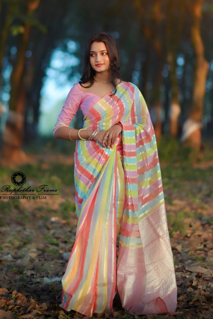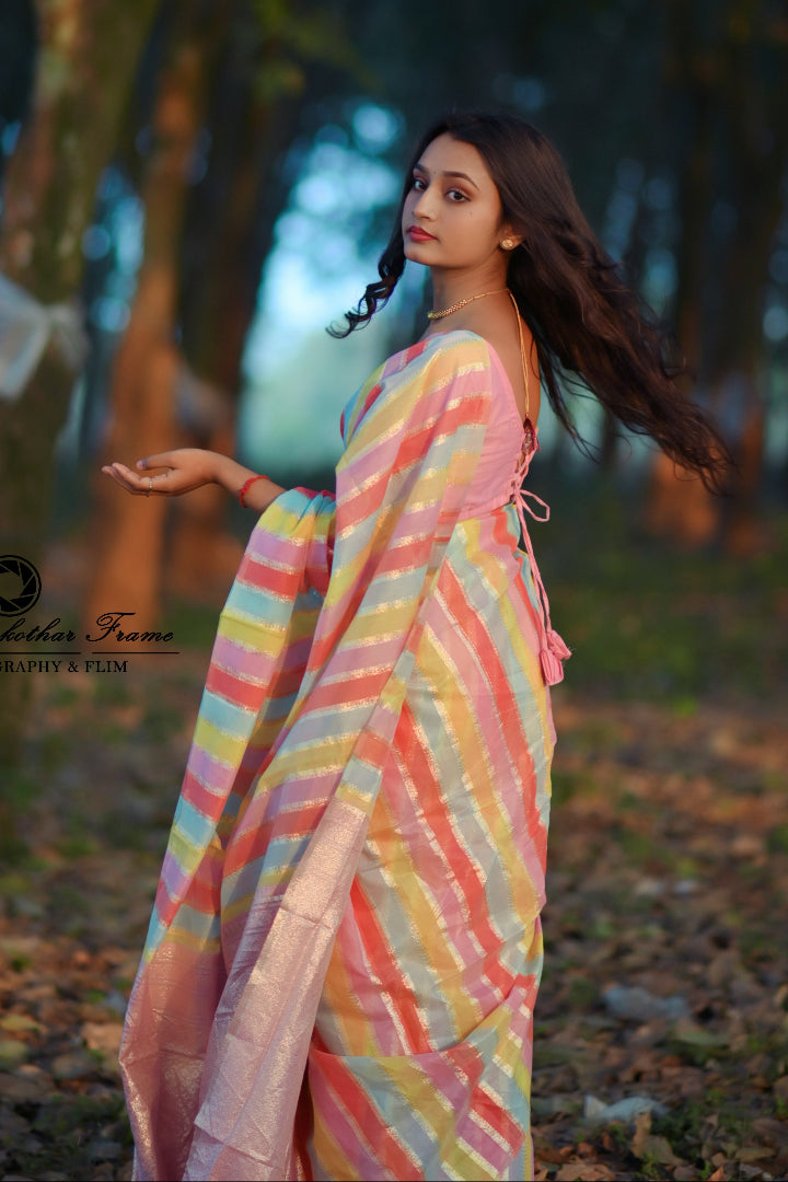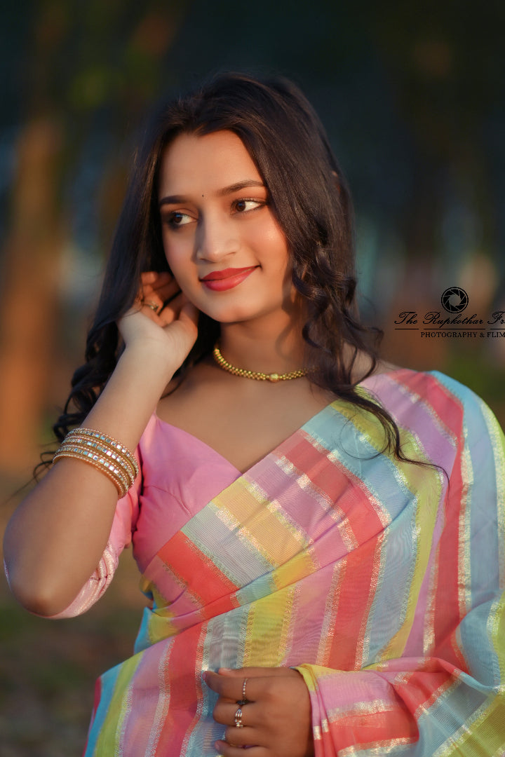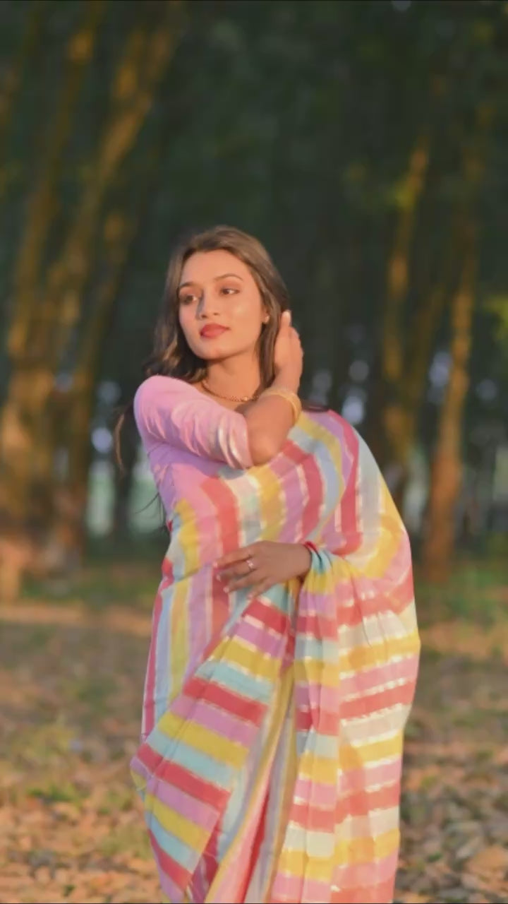 Premium Banarasi Silk & Chanderi Cotton Saree – Lehariya Multi-Colour Elegance for Every Occasion