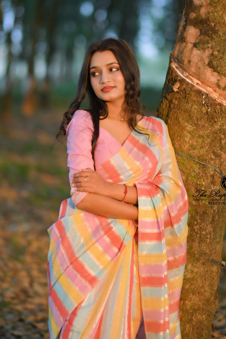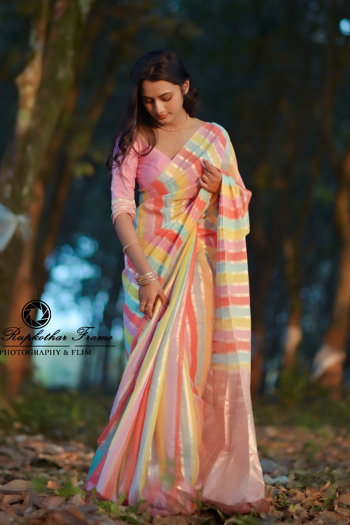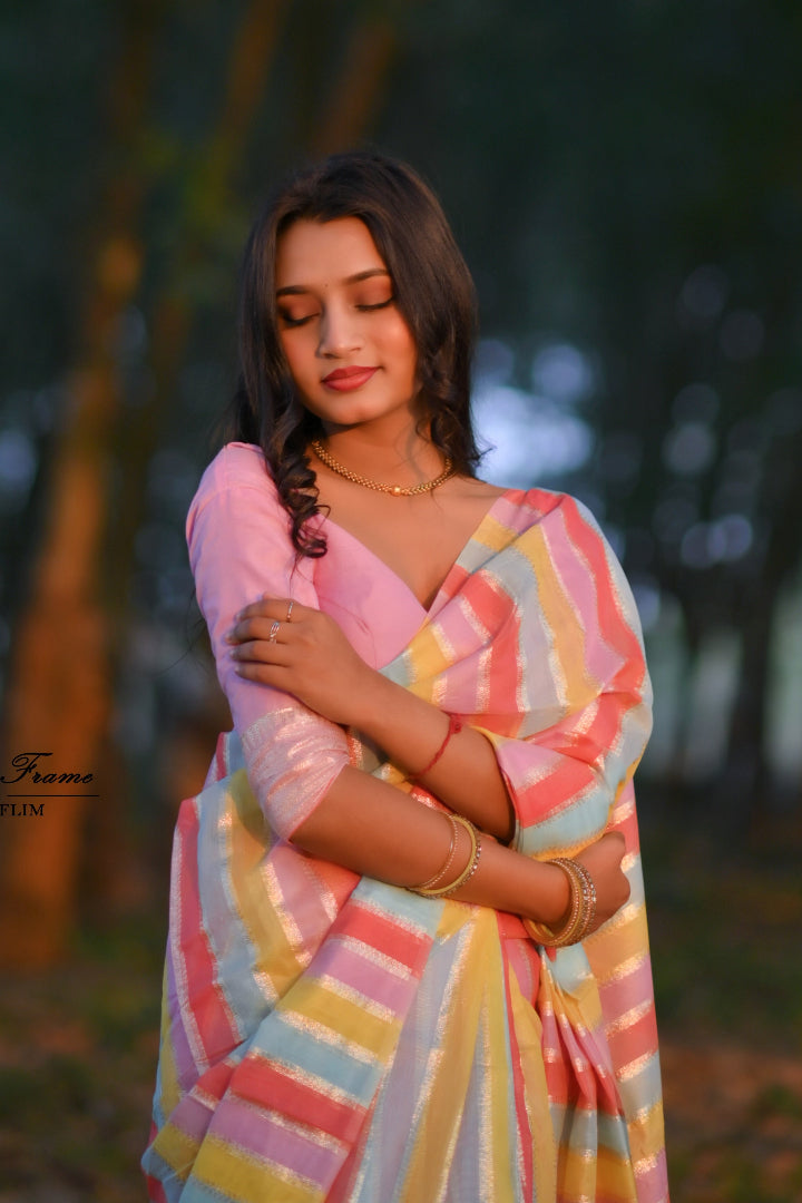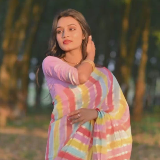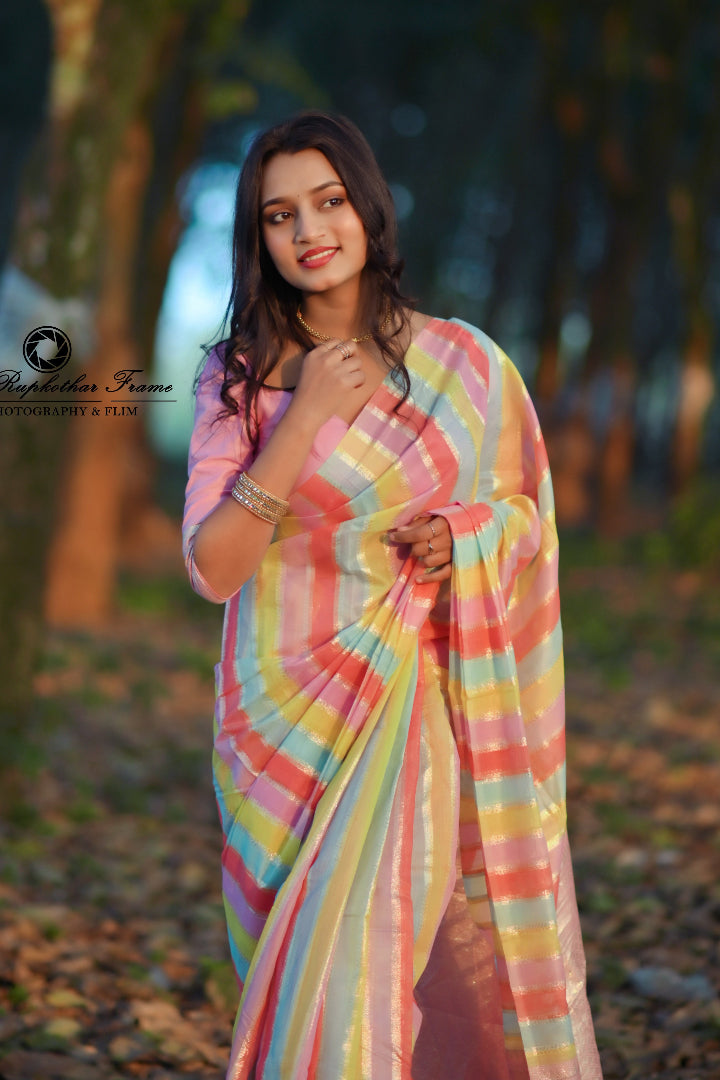 Premium Banarasi Silk & Chanderi Cotton Saree – Lehariya Multi-Colour Elegance for Every Occasion