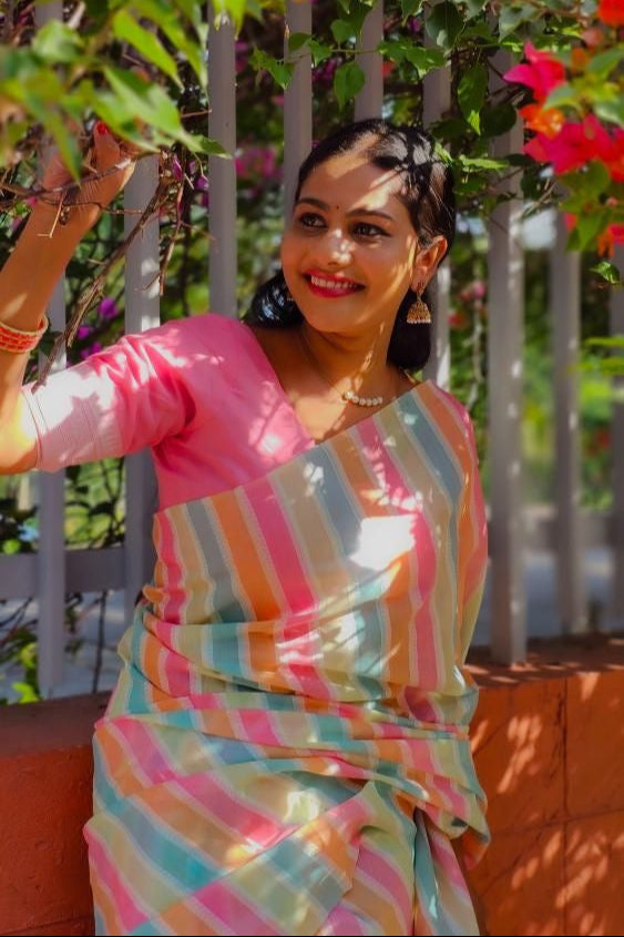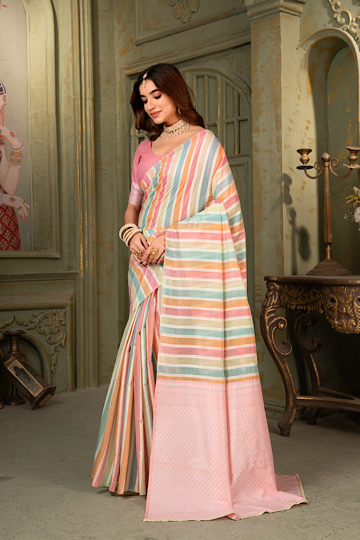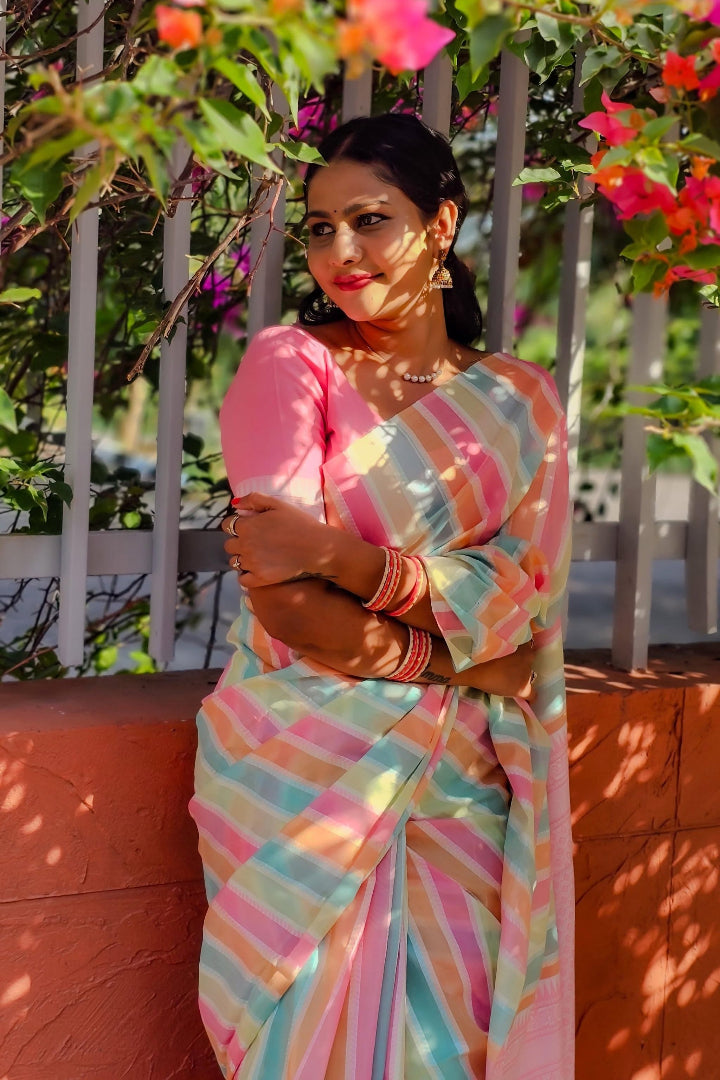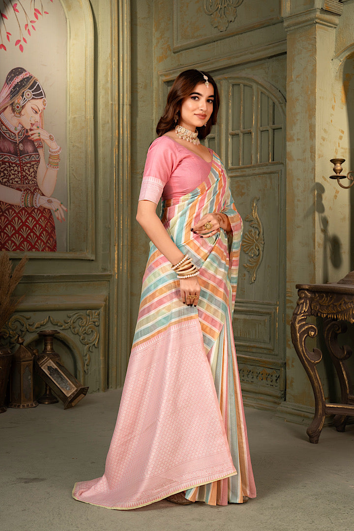 Premium Banarasi Silk & Chanderi Cotton Saree – Lehariya Multi-Colour Elegance for Every Occasion