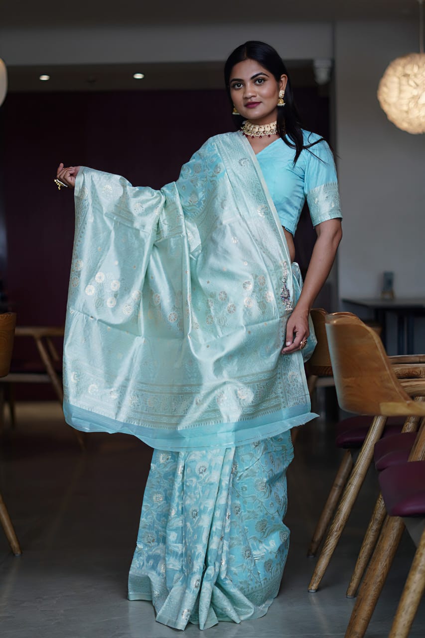 Premium Banarasi Silk Chanderi Saree – Classic Jaal Pattern, All-Season Wear