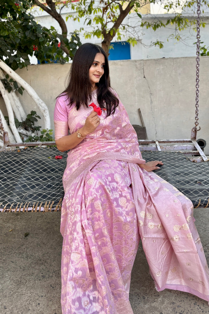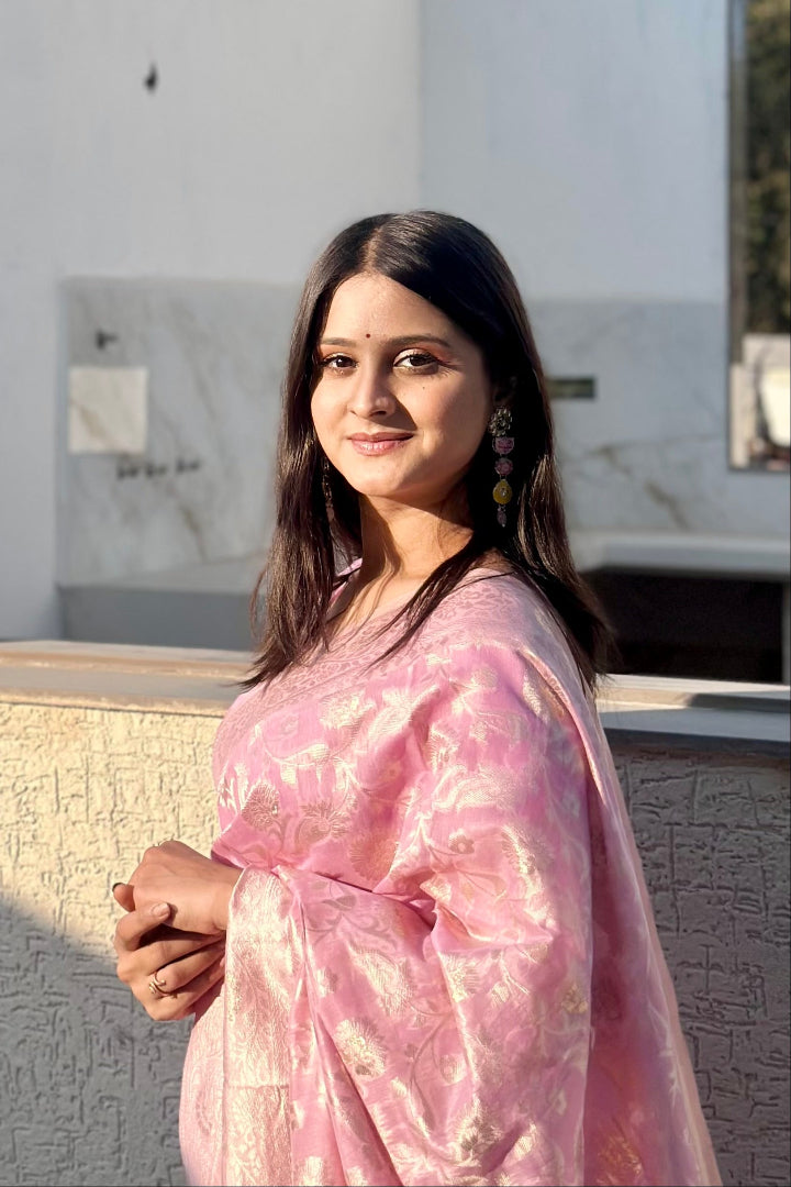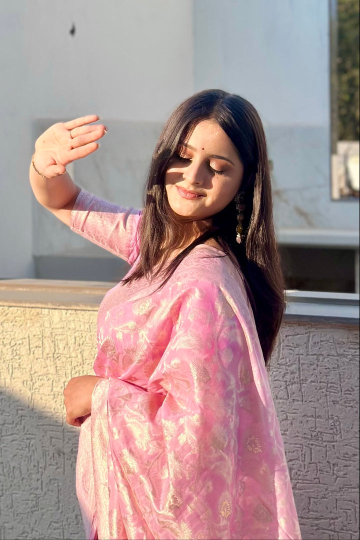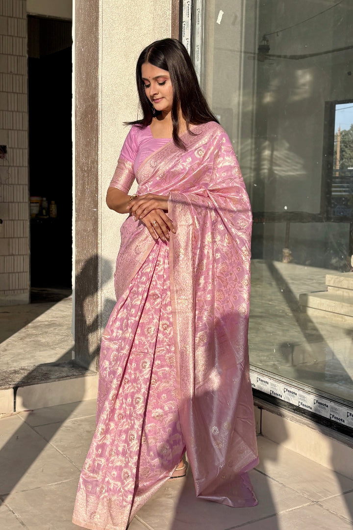 Premium Banarasi Silk Chanderi Saree – Classic Jaal Pattern, All-Season Wear