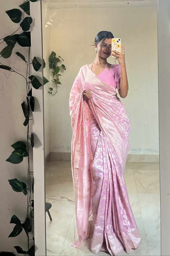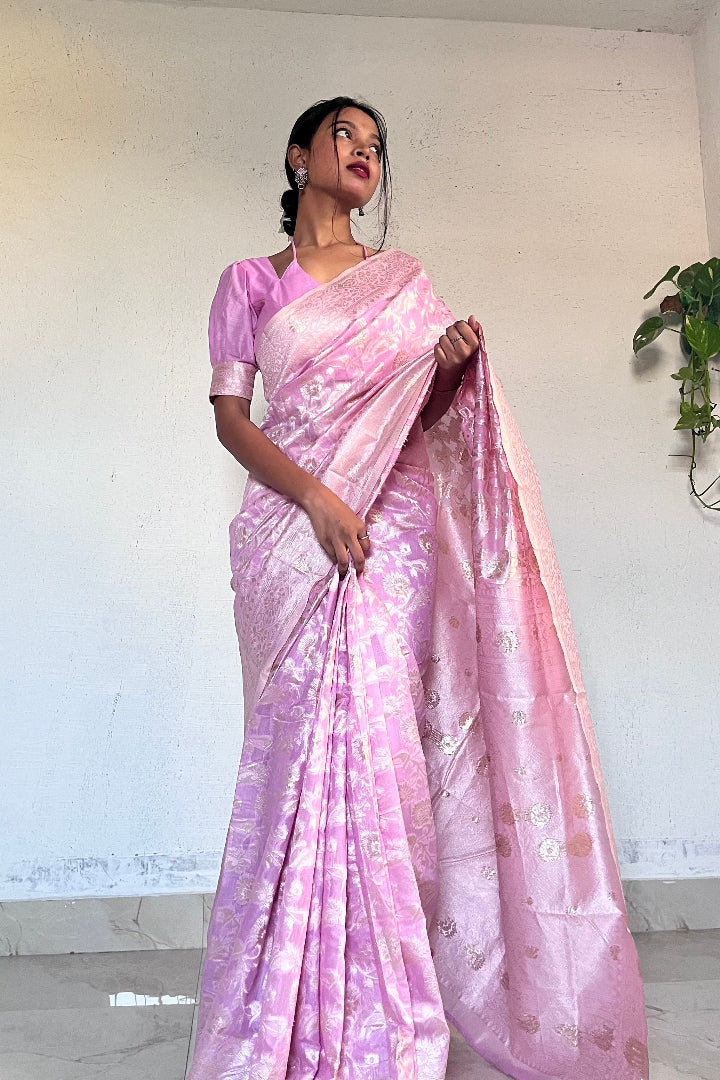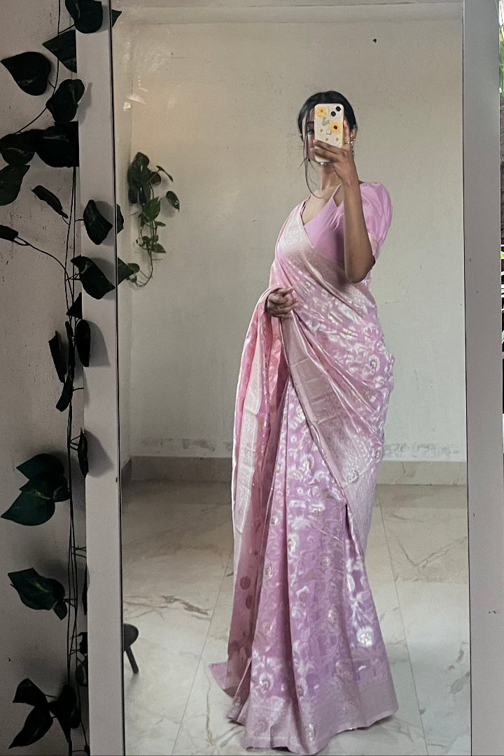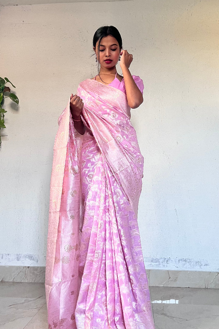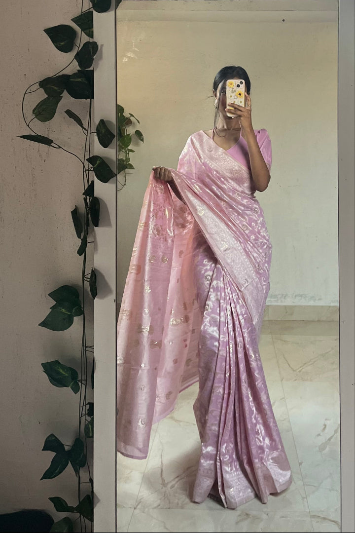 Premium Banarasi Silk Chanderi Saree – Classic Jaal Pattern, All-Season Wear