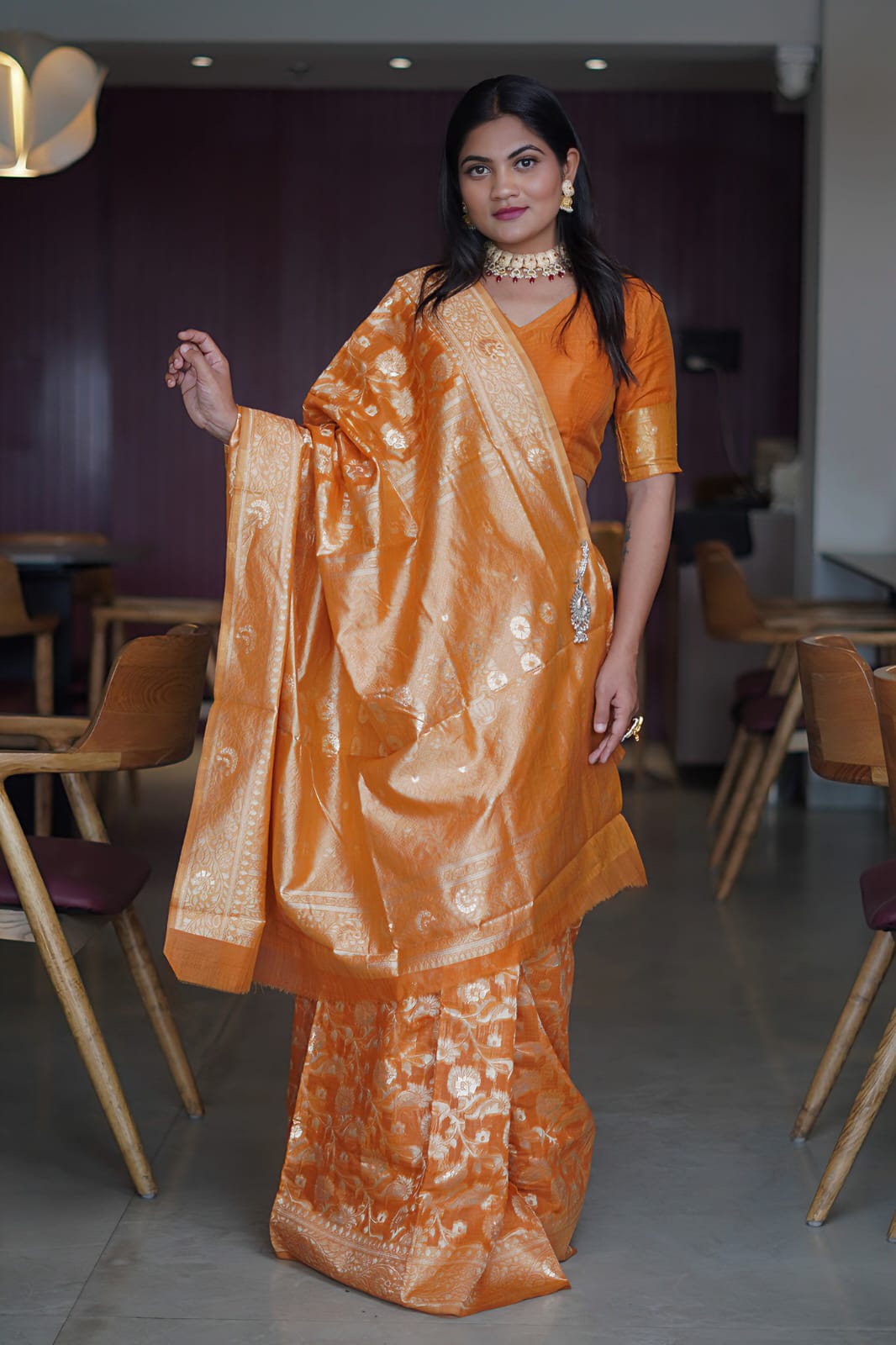 Premium Banarasi Silk Chanderi Saree – Classic Jaal Pattern, All-Season Wear