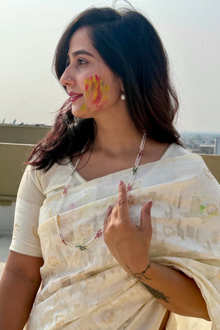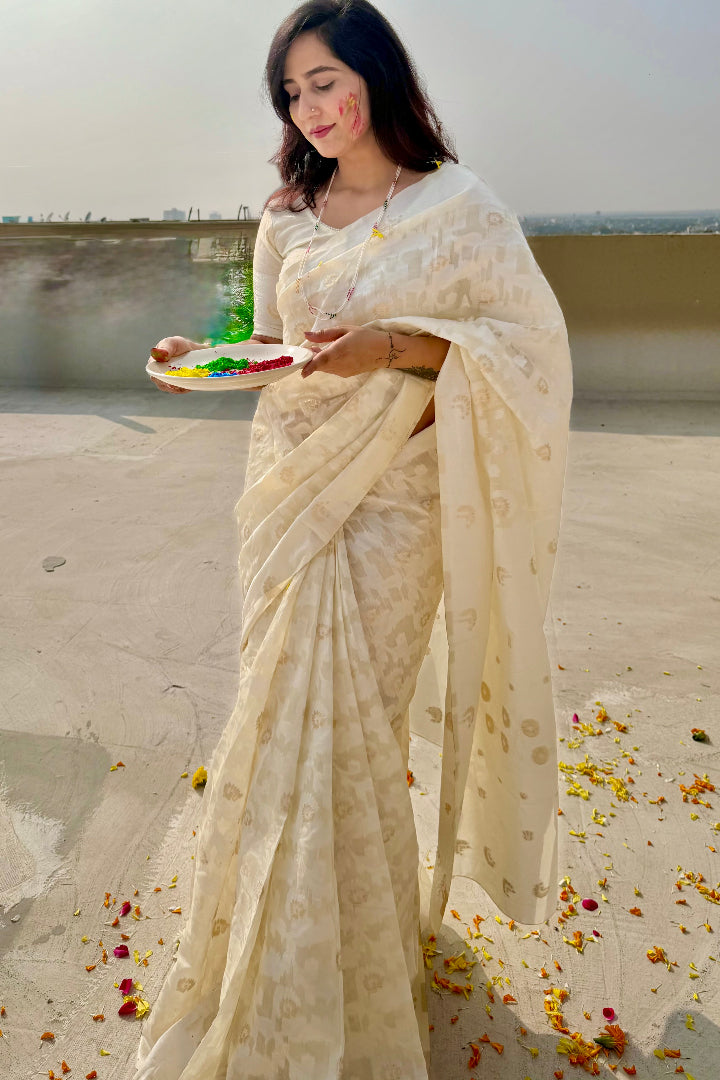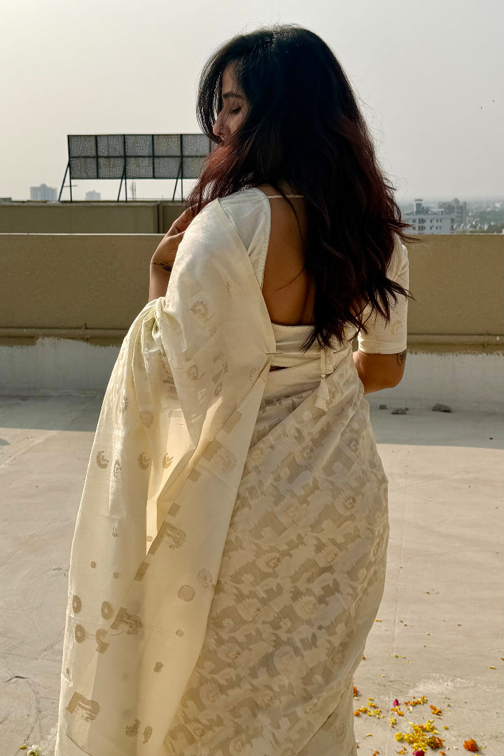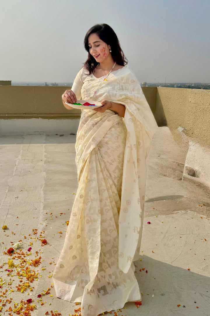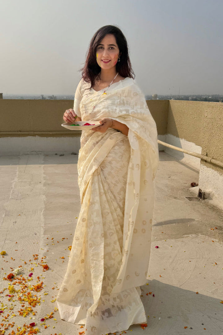 Premium Banarasi Silk Chanderi Saree – Classic Jaal Pattern, All-Season Wear