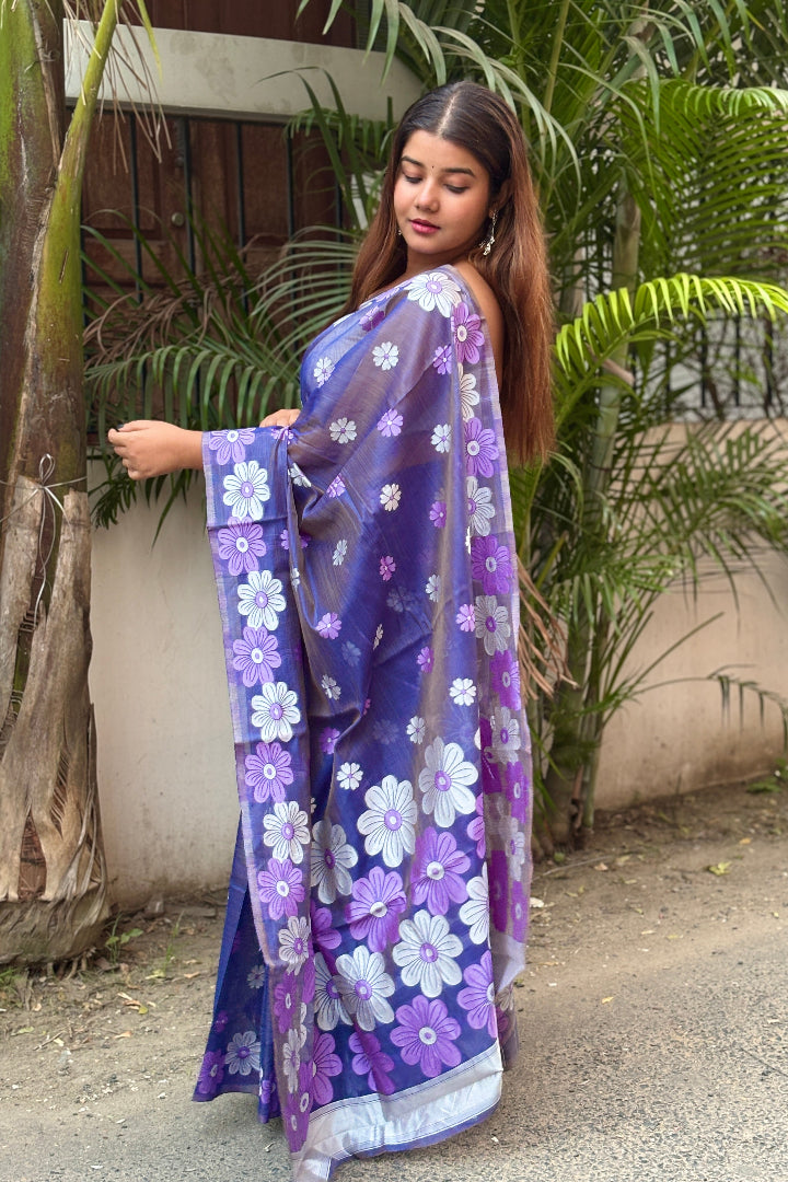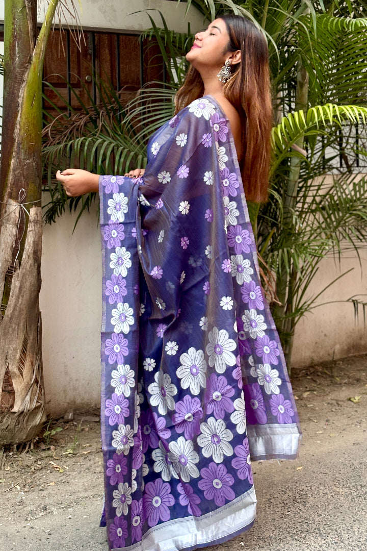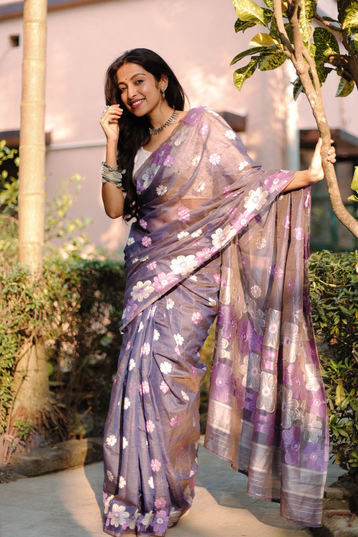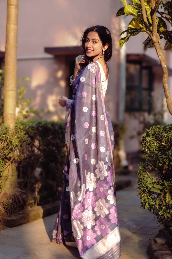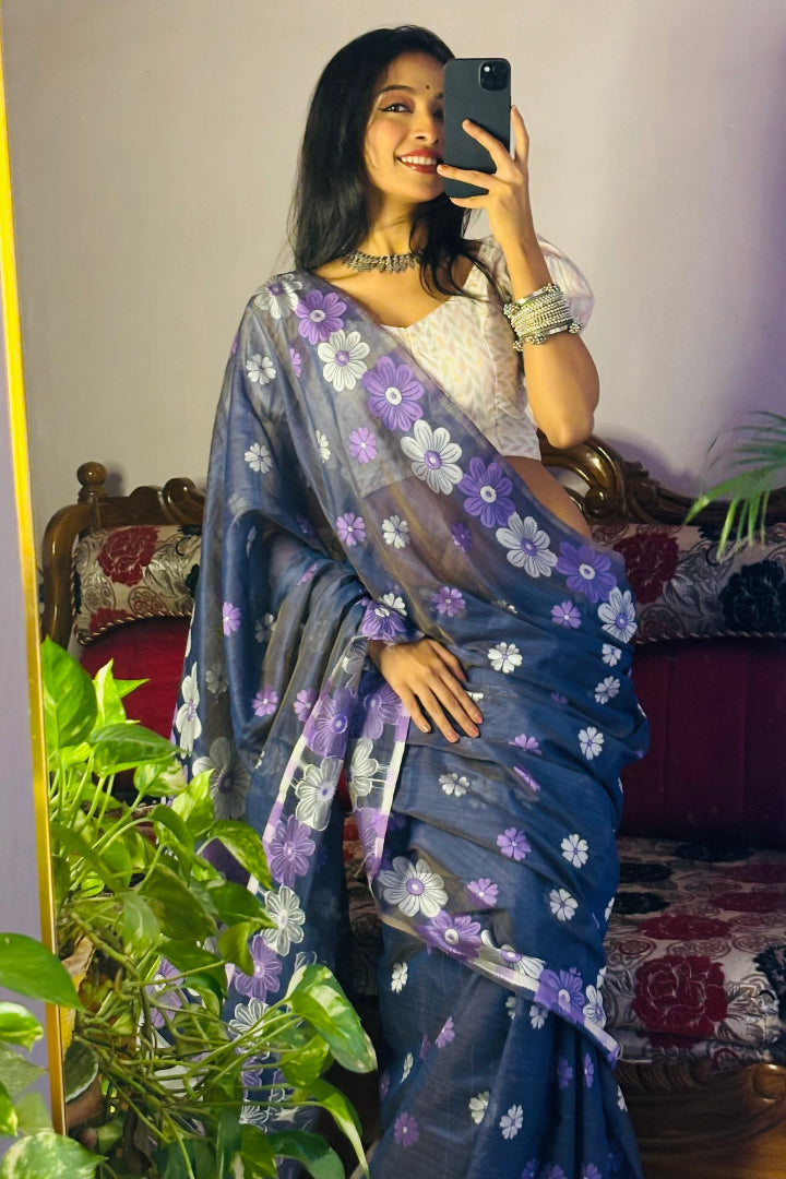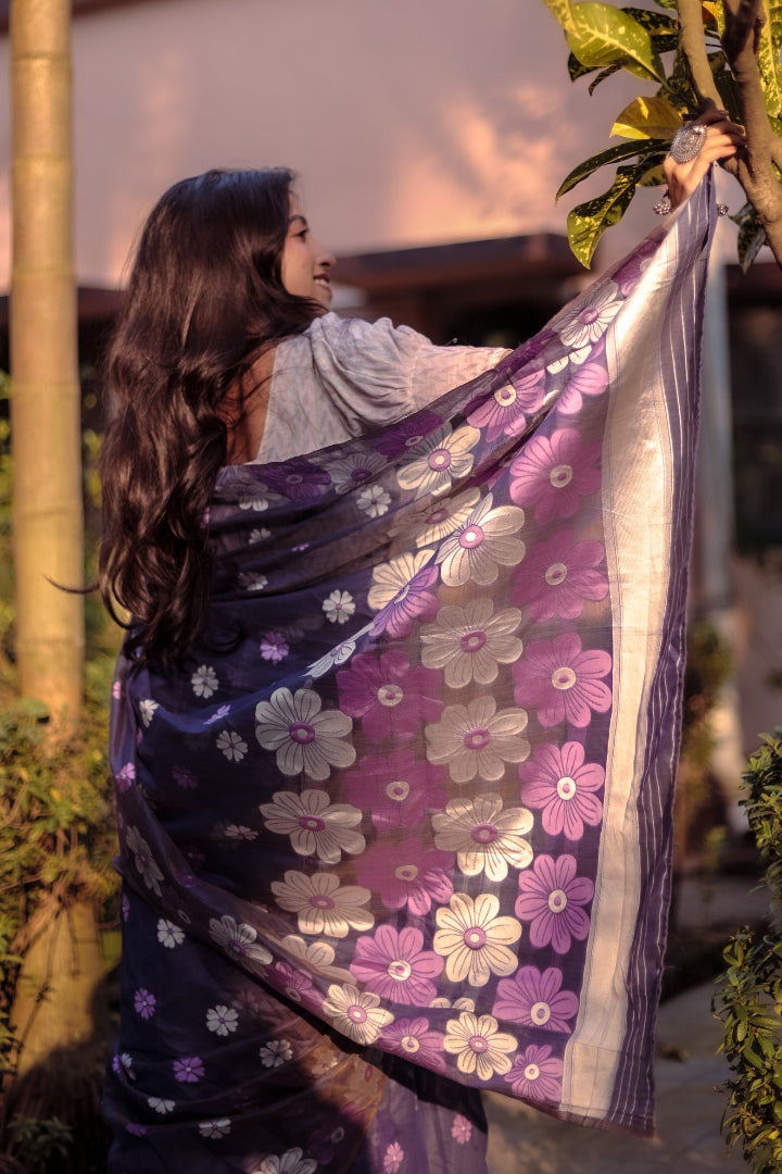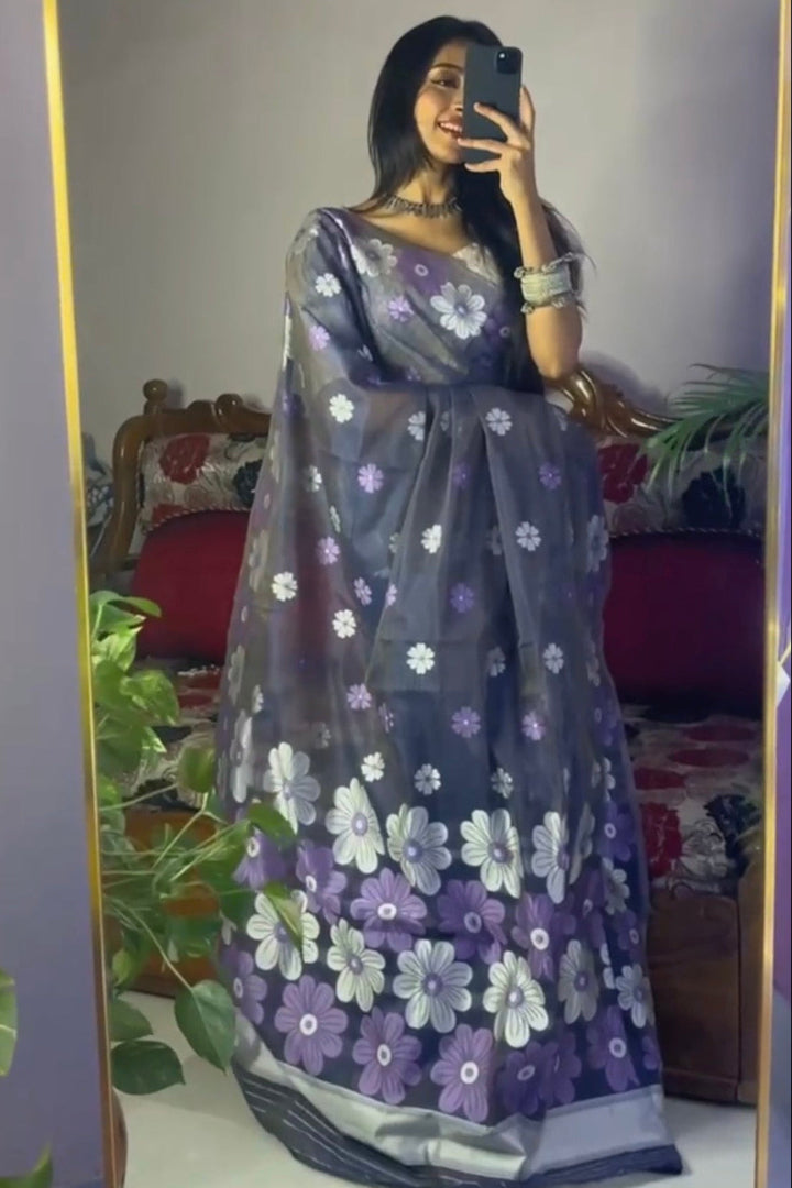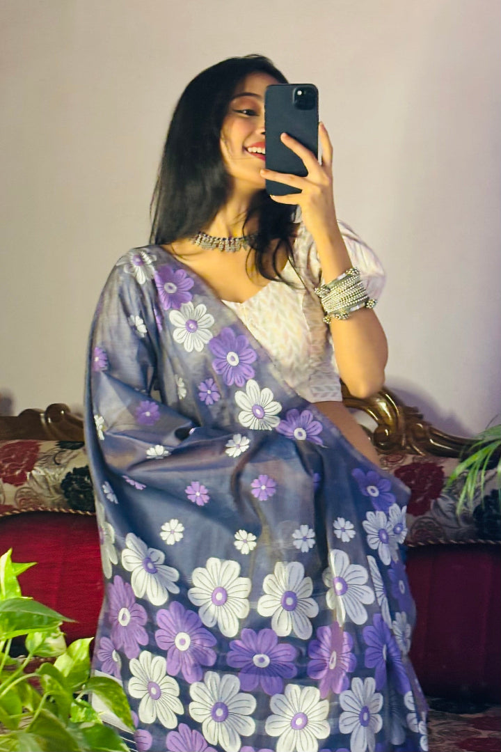 All-Occasion Premium Saree in Banarasi Silk & Chanderi Cotton – Graceful Floral Weaving Design