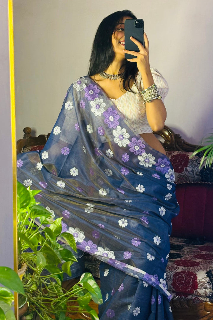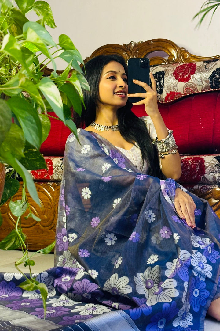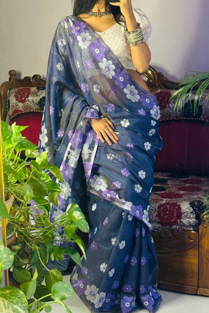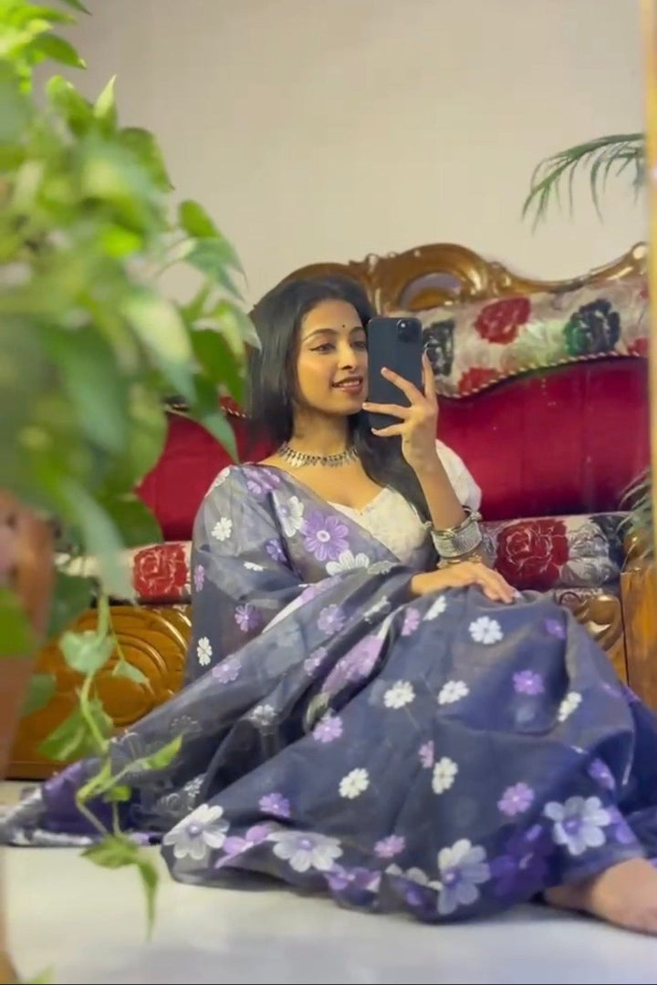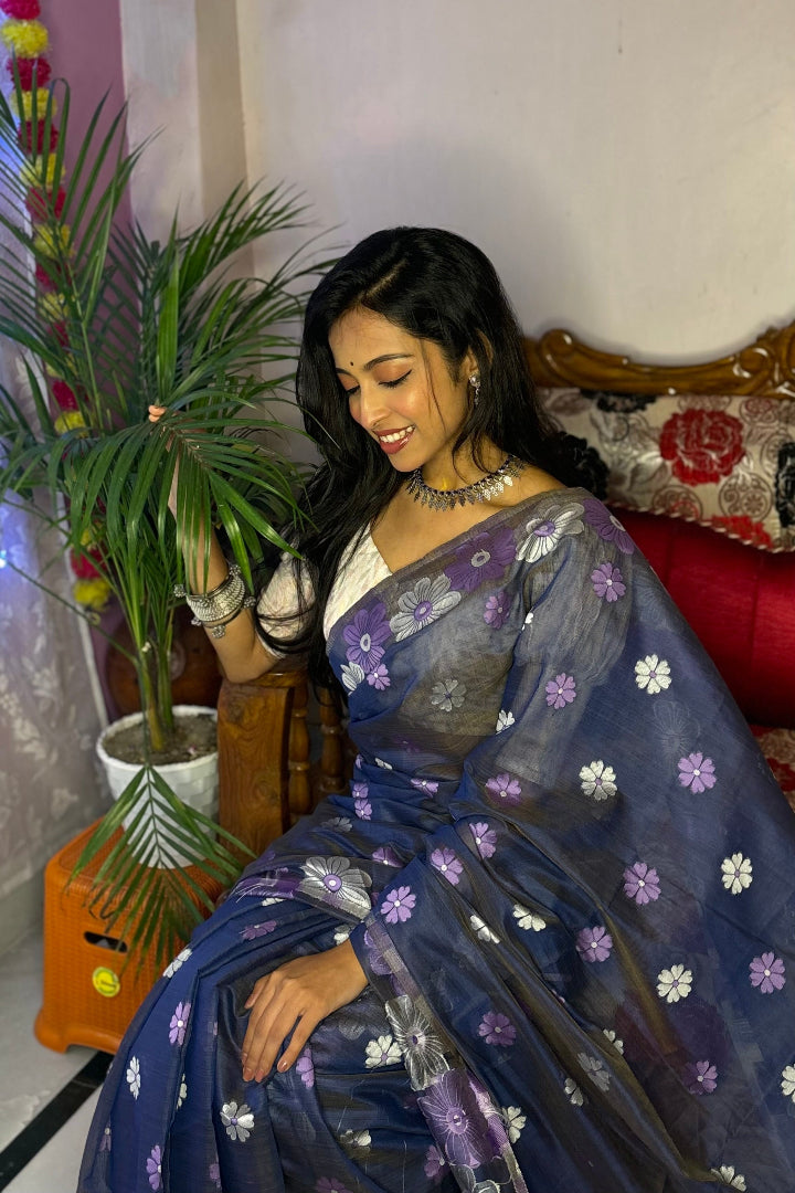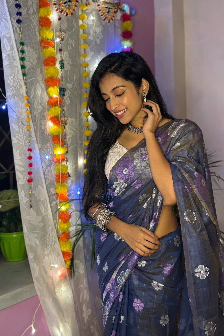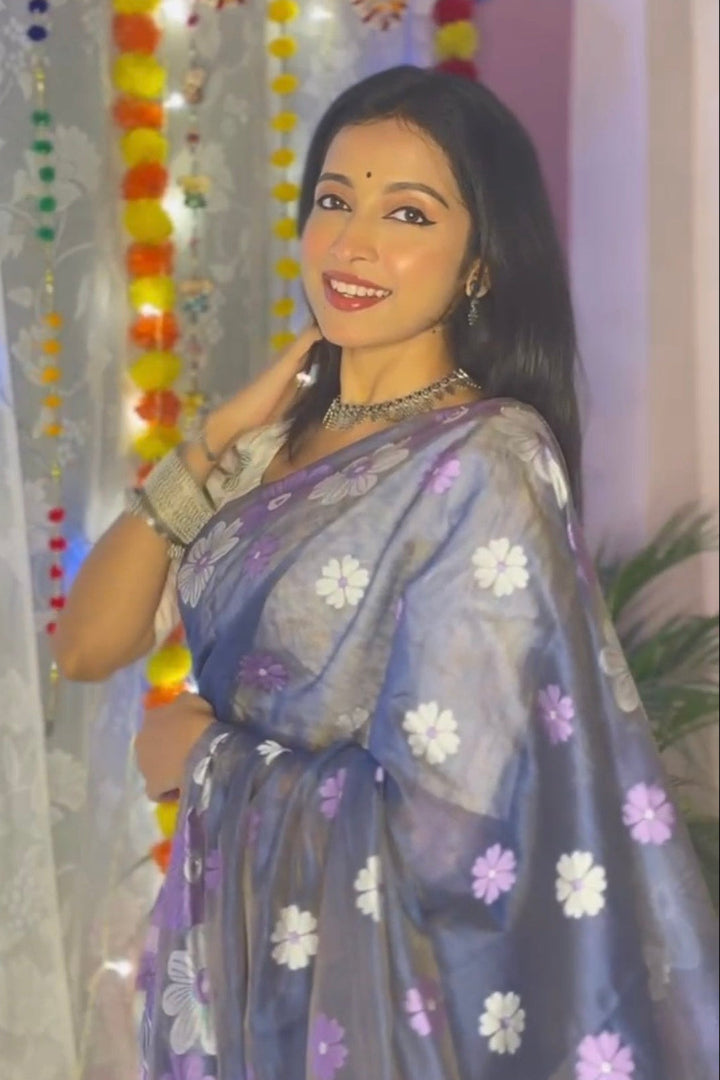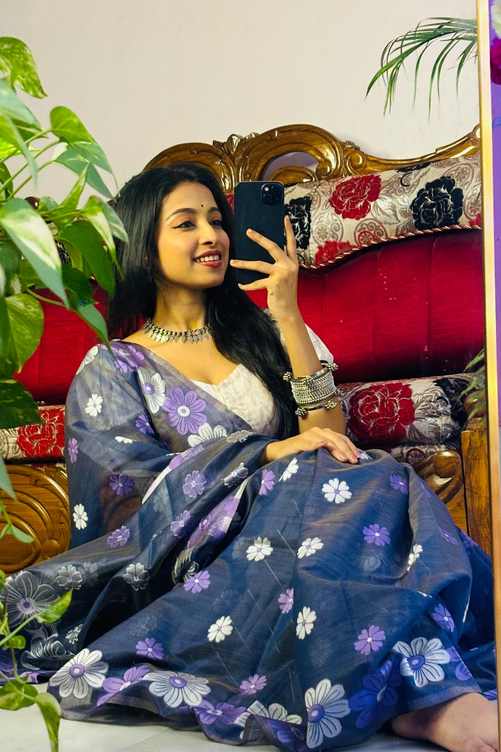All-Occasion Premium Saree in Banarasi Silk & Chanderi Cotton – Graceful Floral Weaving Design
