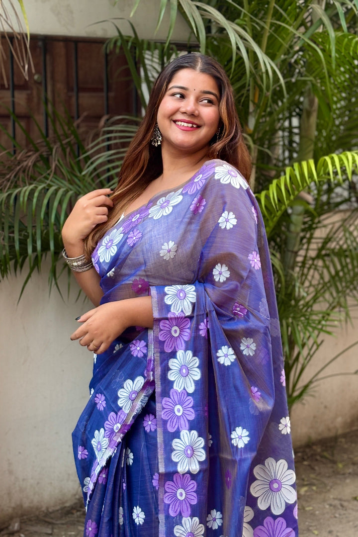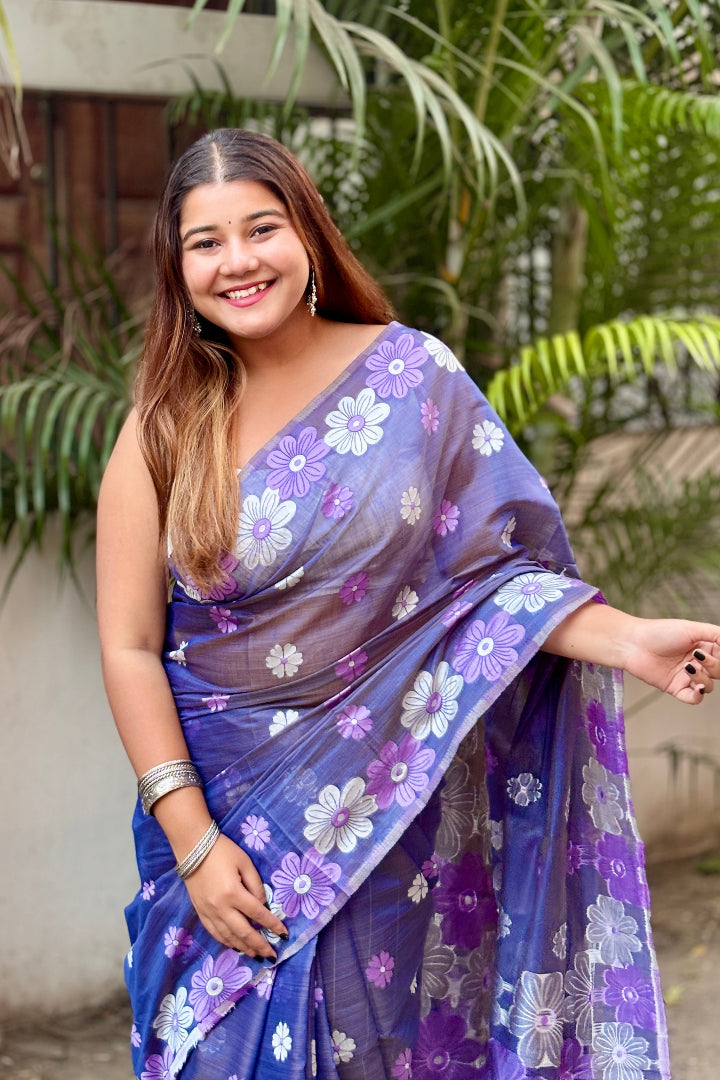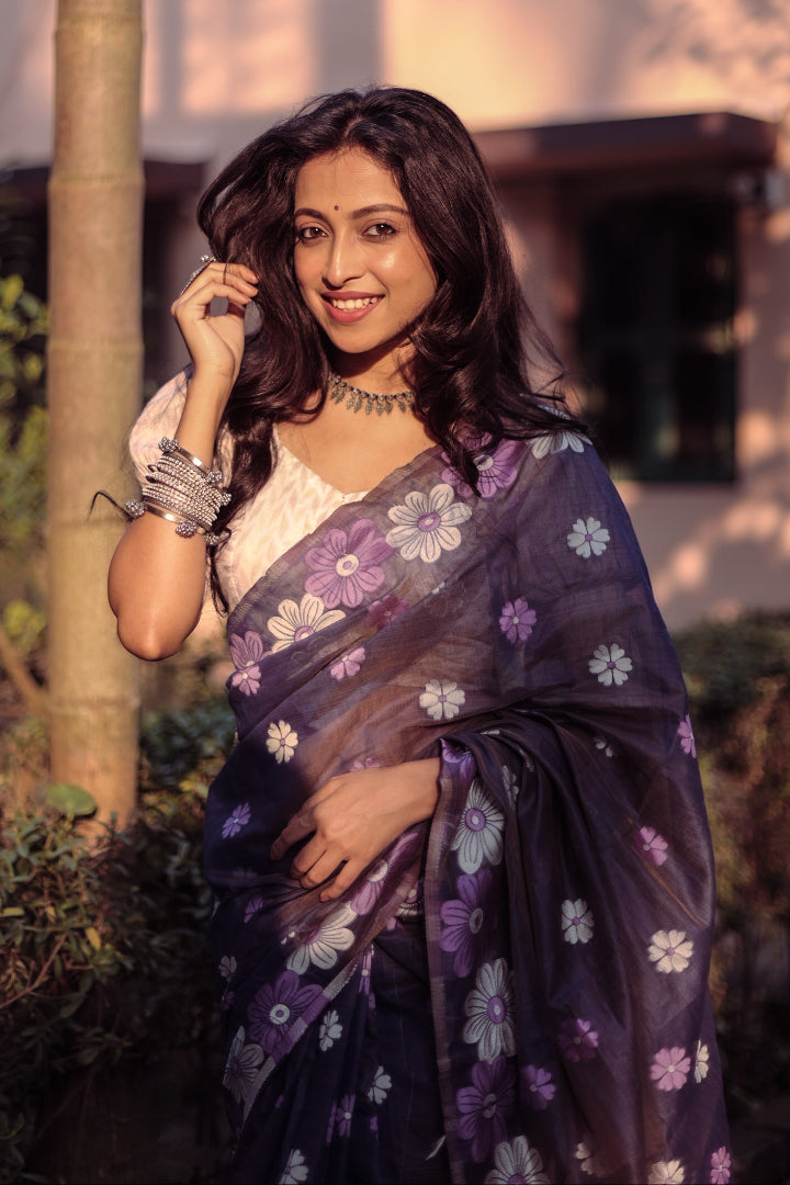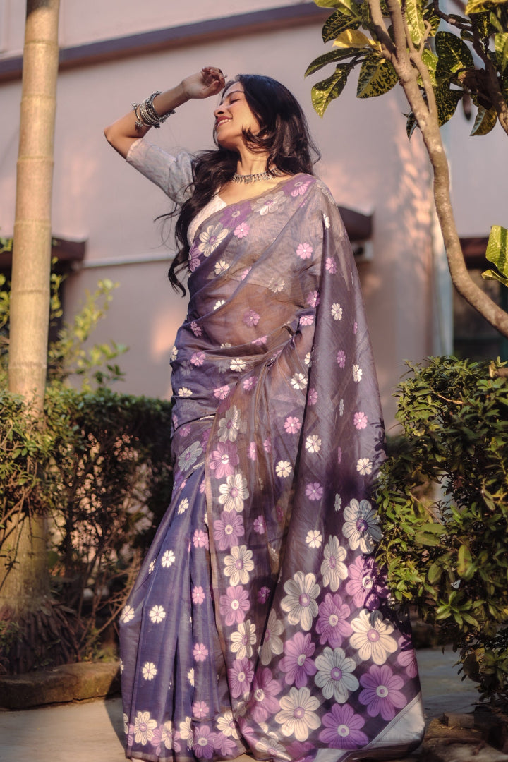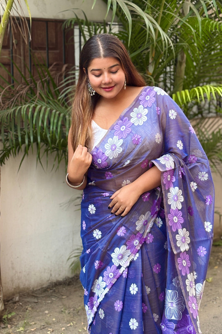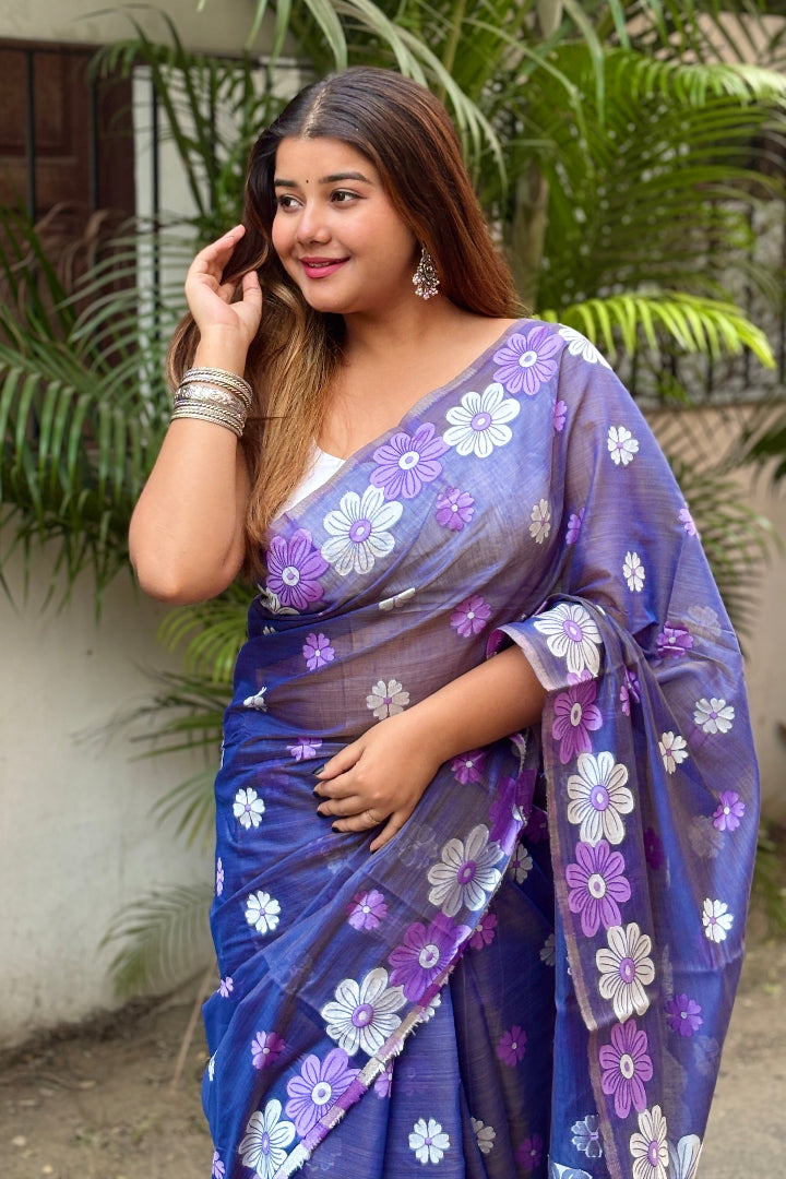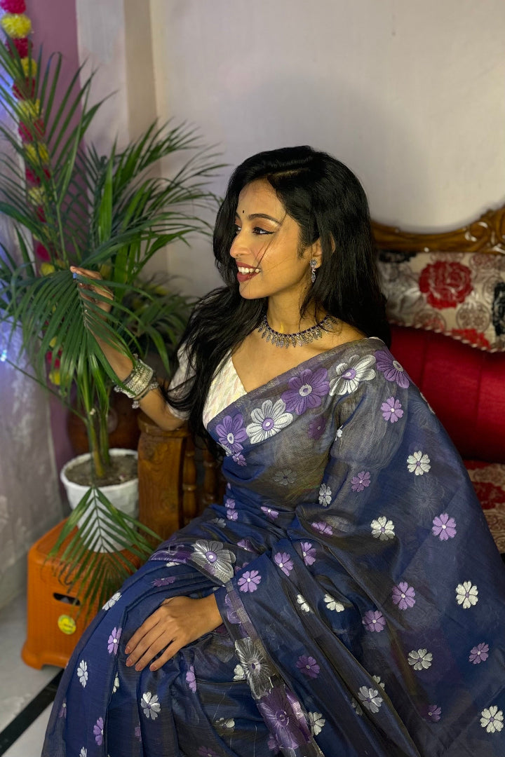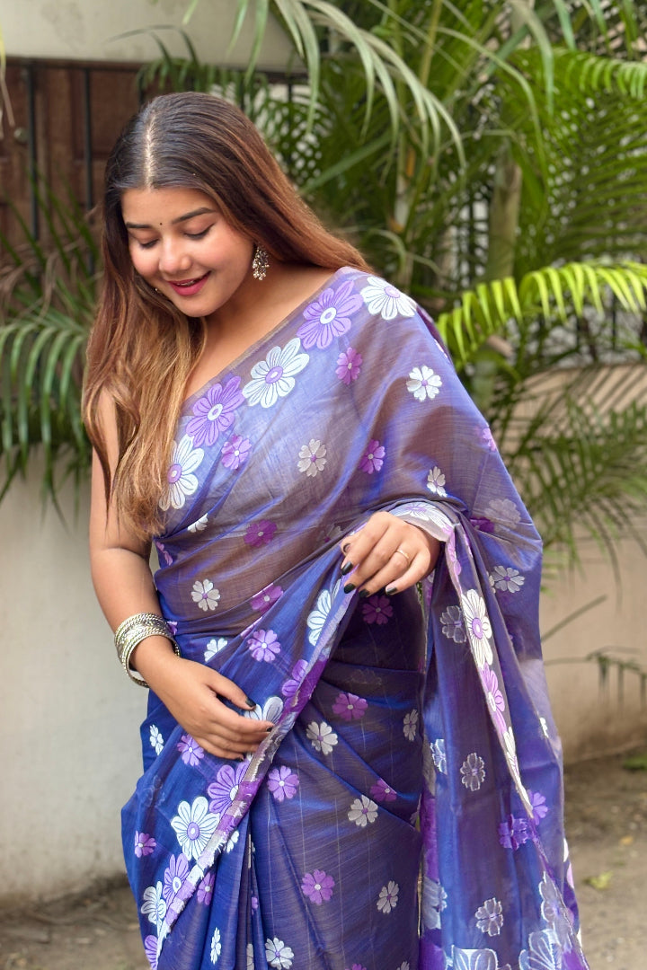 All-Occasion Premium Saree in Banarasi Silk & Chanderi Cotton – Graceful Floral Weaving Design
