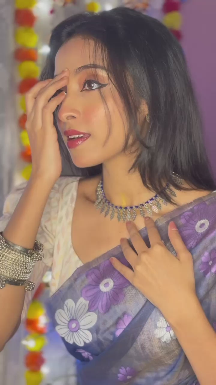 Discover timeless beauty with this Premium Banarasi Saree crafted in a soft polyester-cotton blend. Featuring intricate Banarasi weaving and a rich, elegant colour palette, this saree adds grace to every step you take.