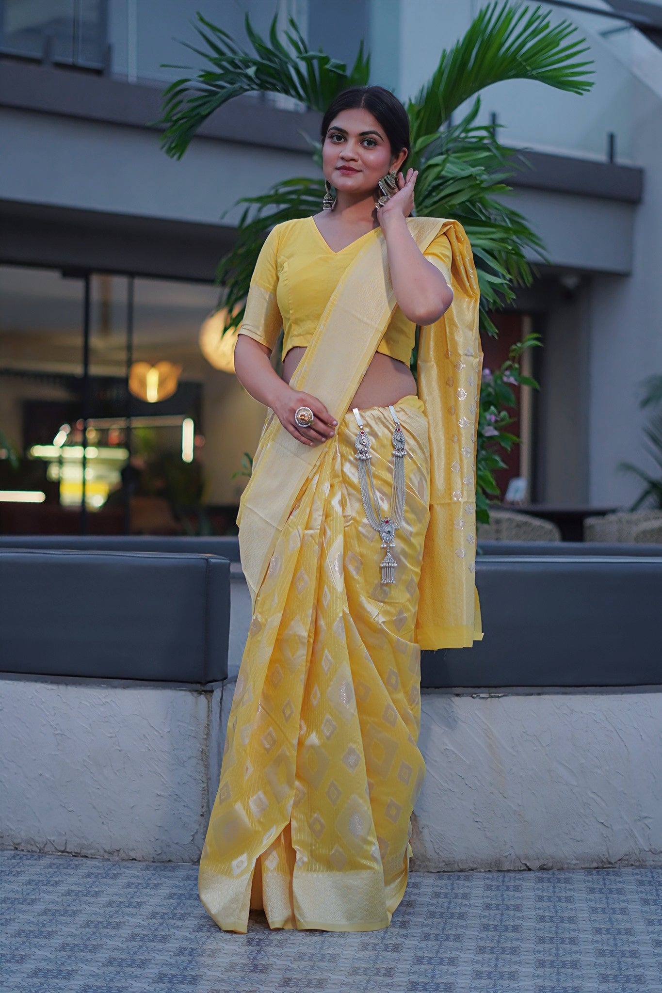 - Style Tip: Pair with traditional jewellery and heels for a royal look
