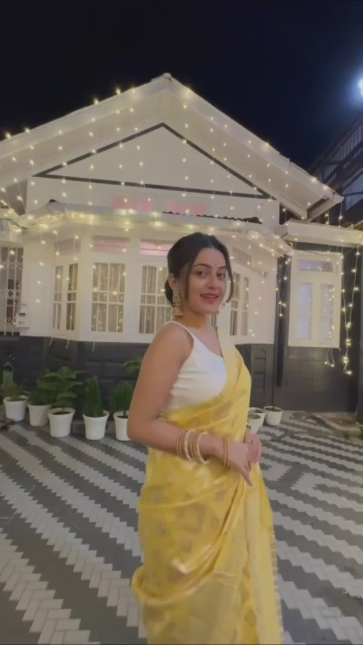 Discover timeless beauty with this Premium Banarasi Saree crafted in a soft polyester-cotton blend. Featuring intricate Banarasi weaving and a rich, elegant colour palette, this saree adds grace to every step you take.