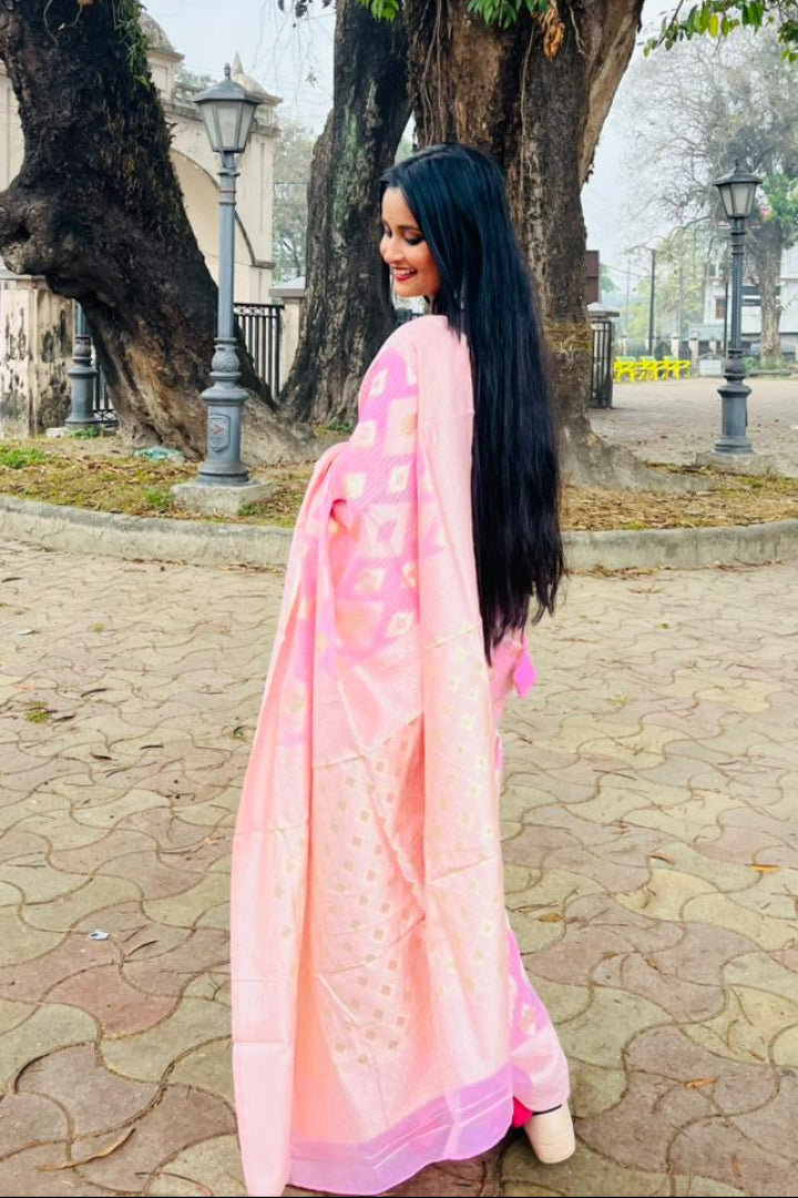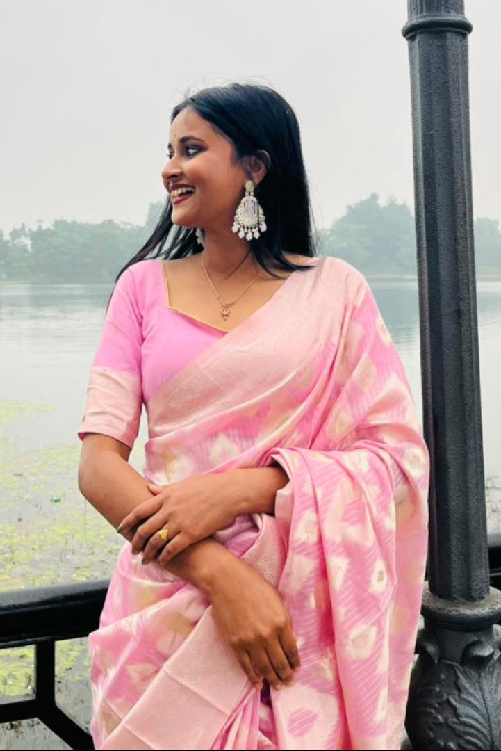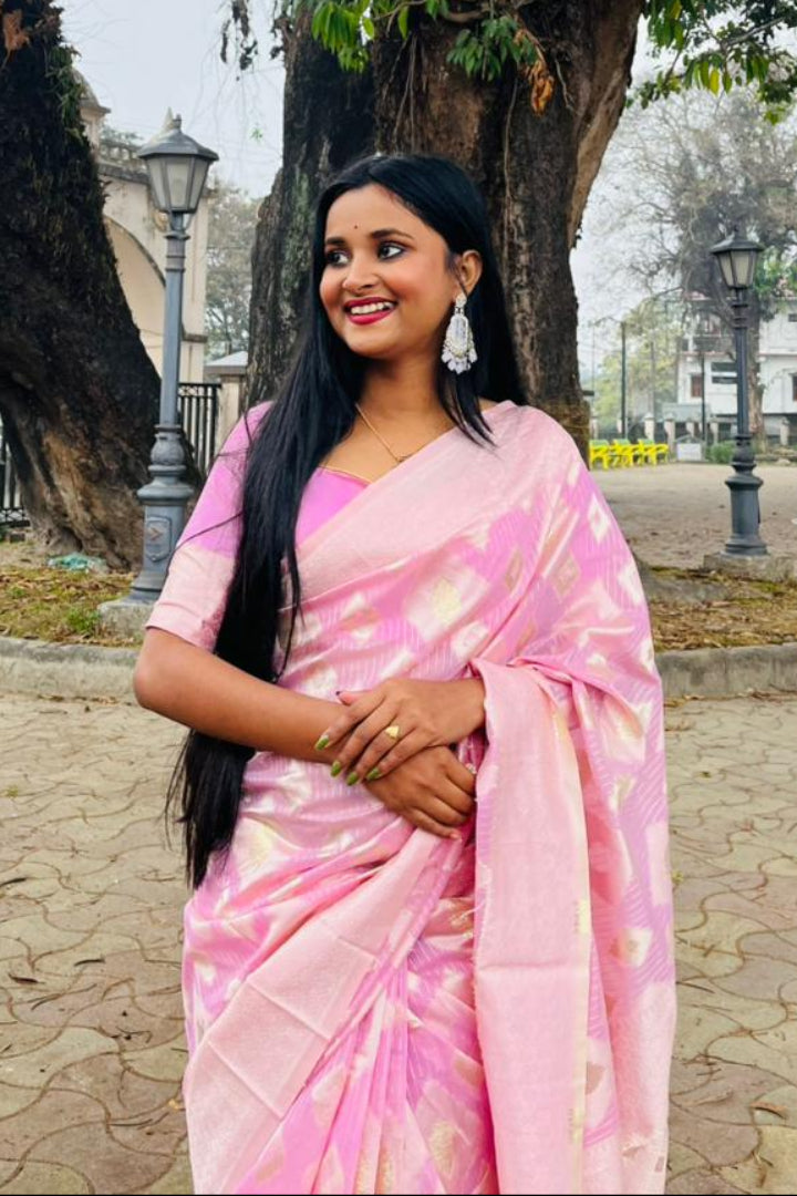 Discover timeless beauty with this Premium Banarasi Saree crafted in a soft polyester-cotton blend. Featuring intricate Banarasi weaving and a rich, elegant colour palette, this saree adds grace to every step you take.