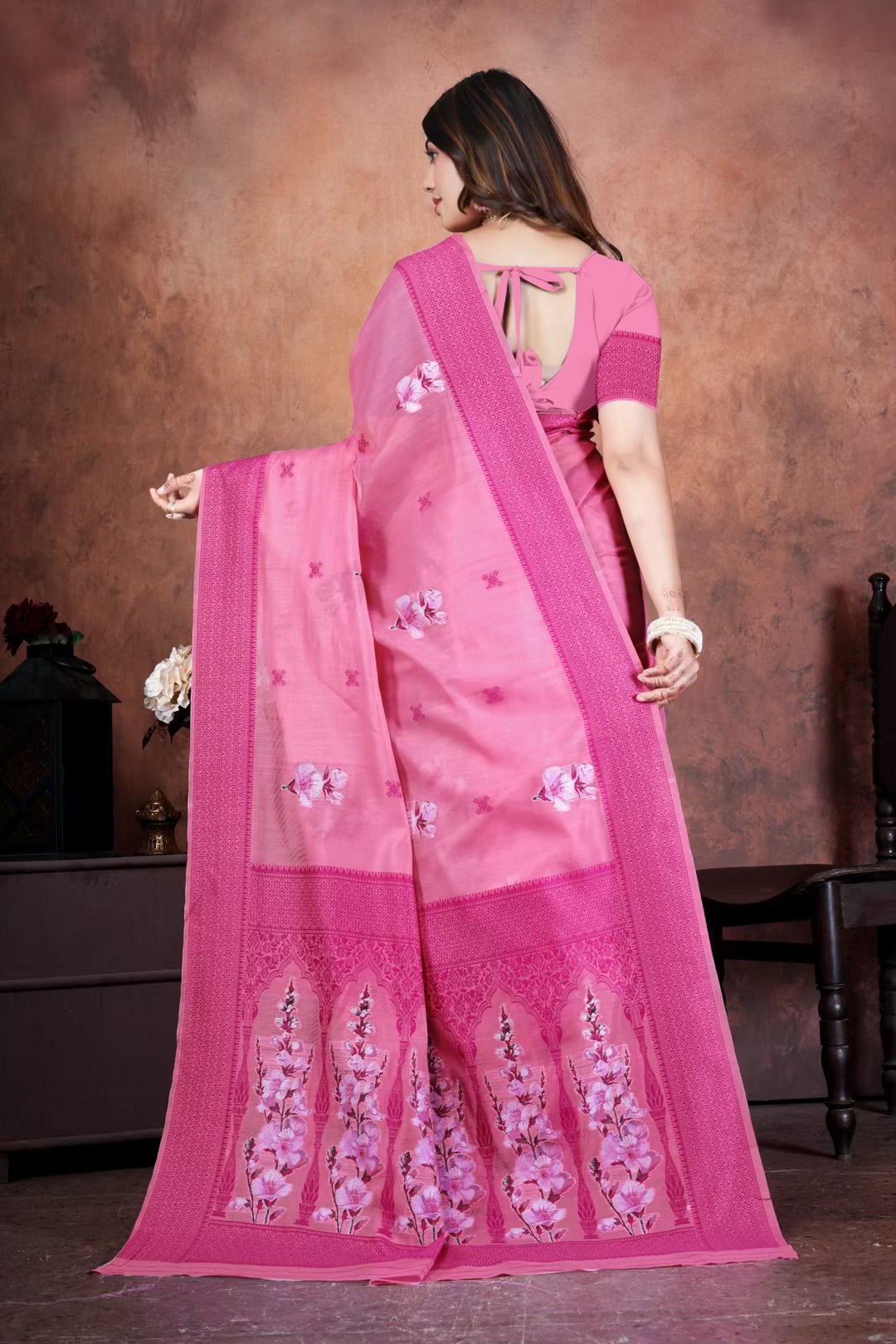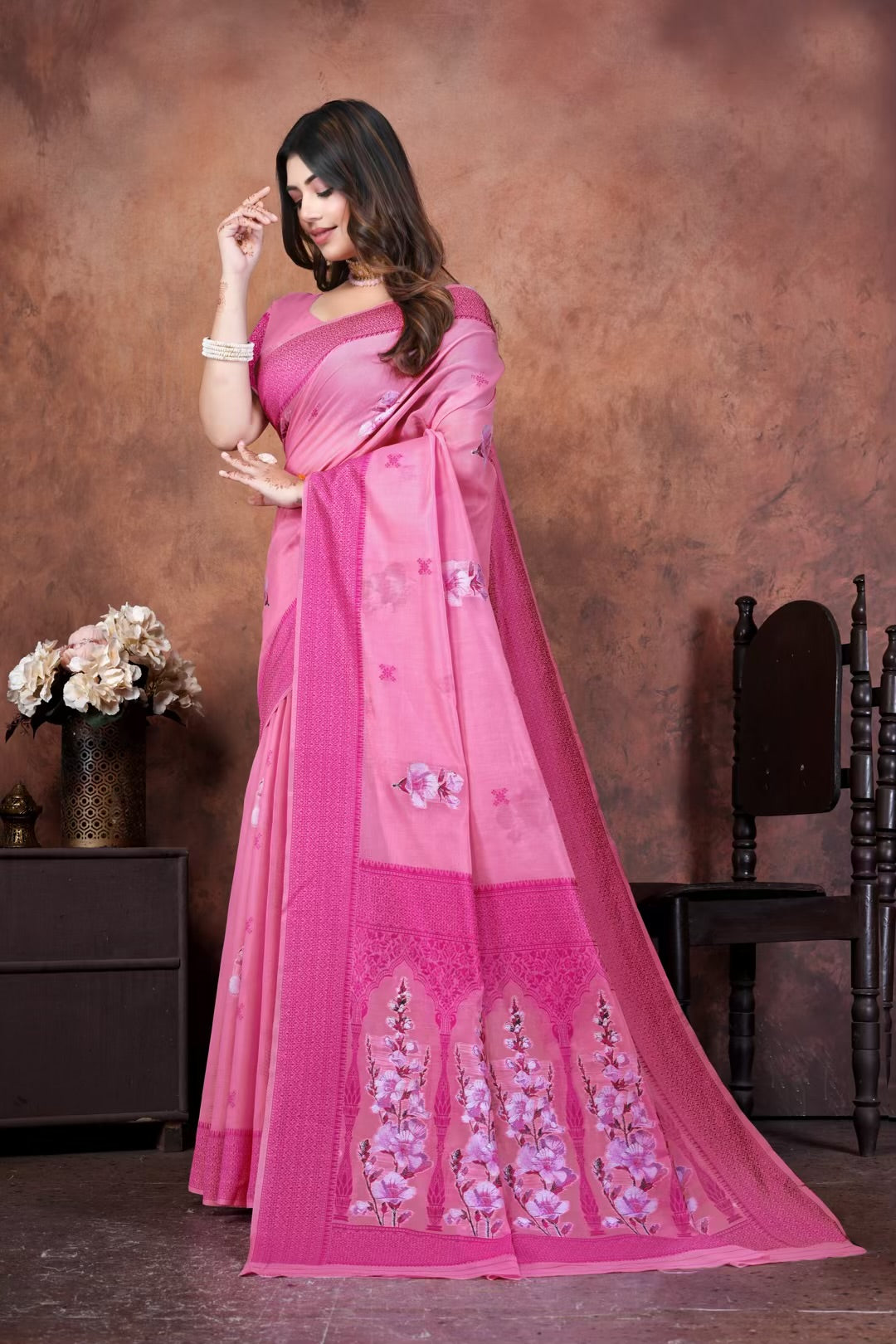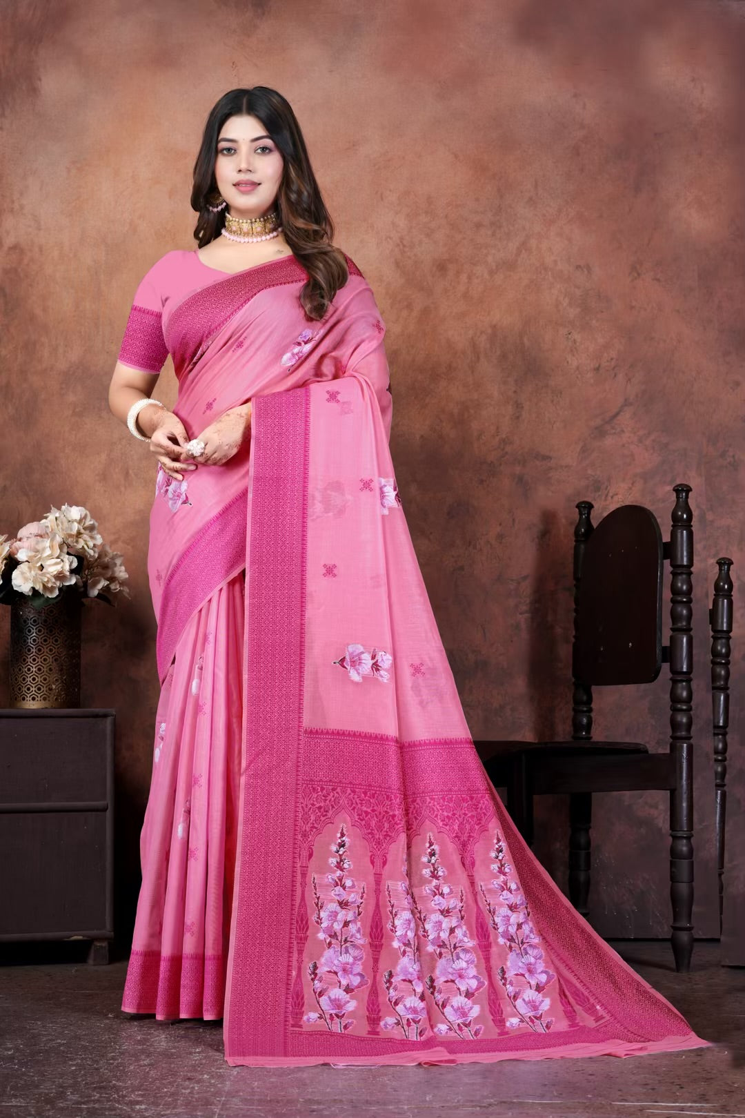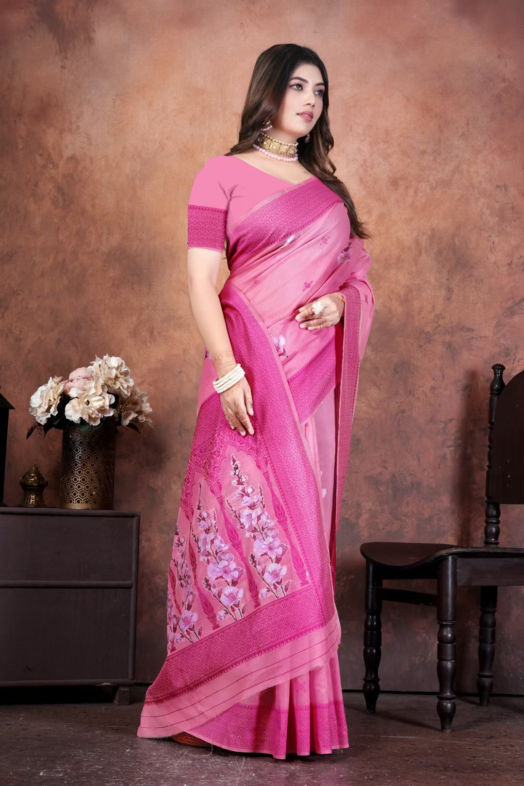 Beautifully Woven Banarasi Saree – Chanderi Cotton Blend with Digital Butta