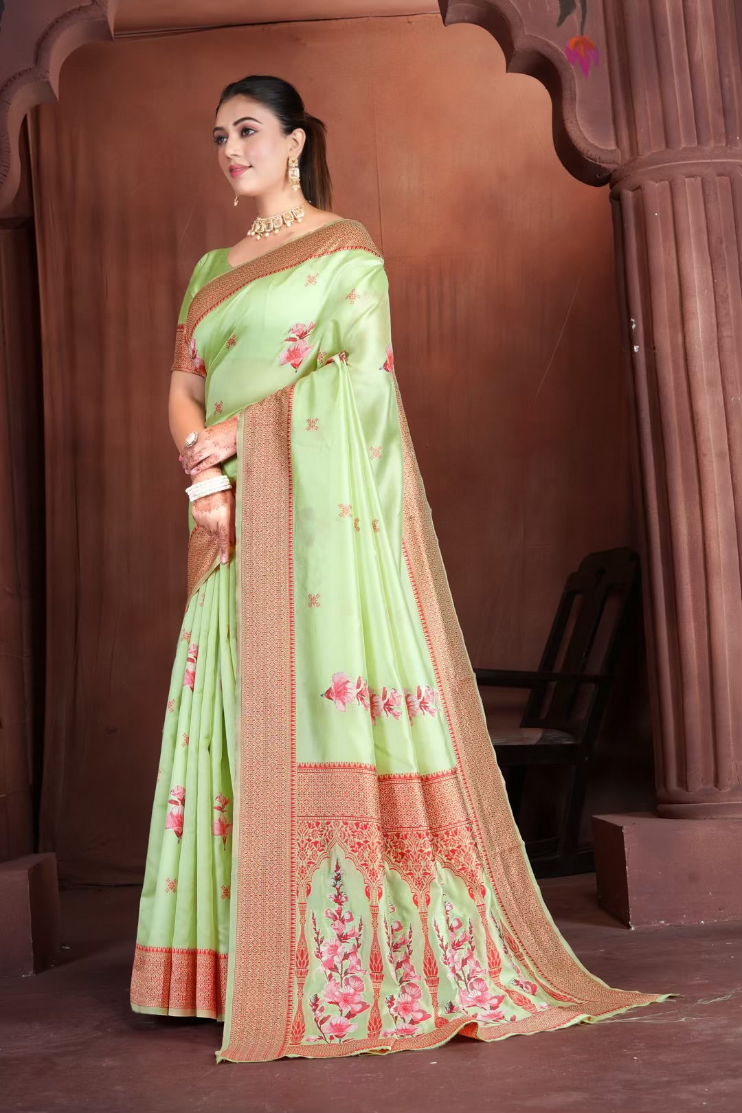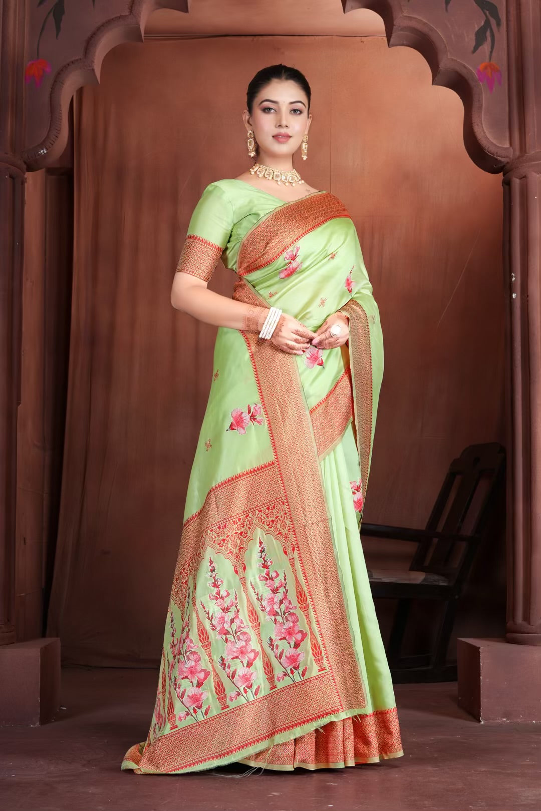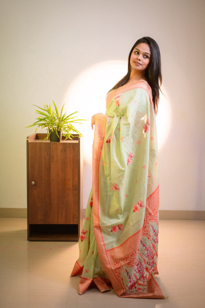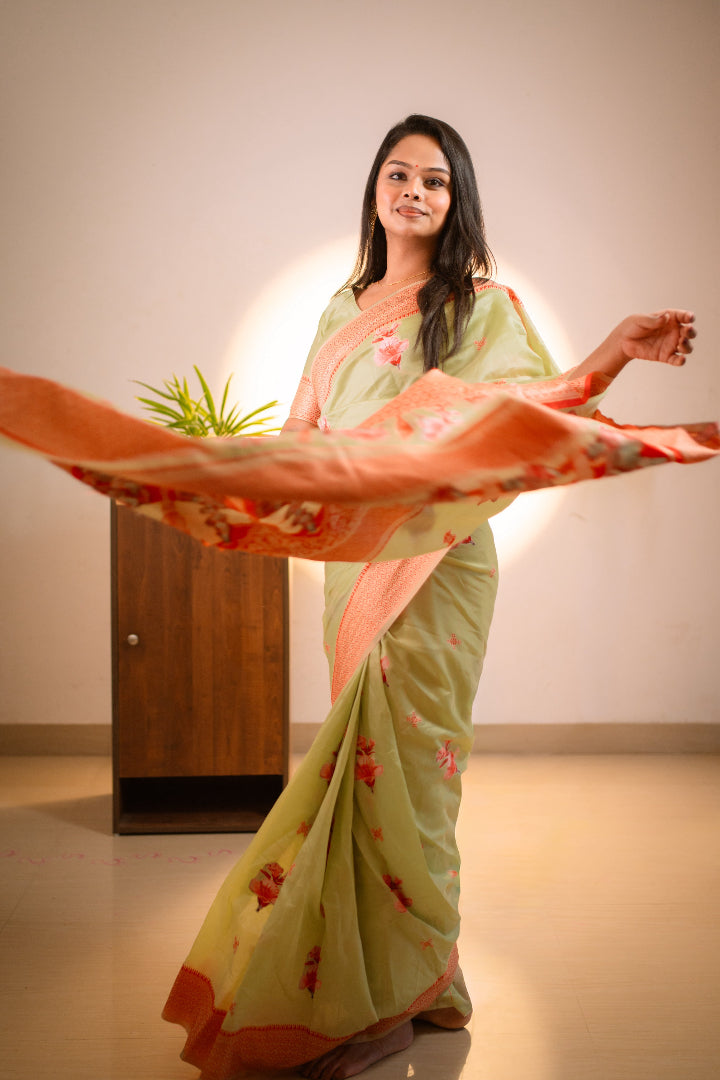 Beautifully Woven Banarasi Saree – Chanderi Cotton Blend with Digital Butta