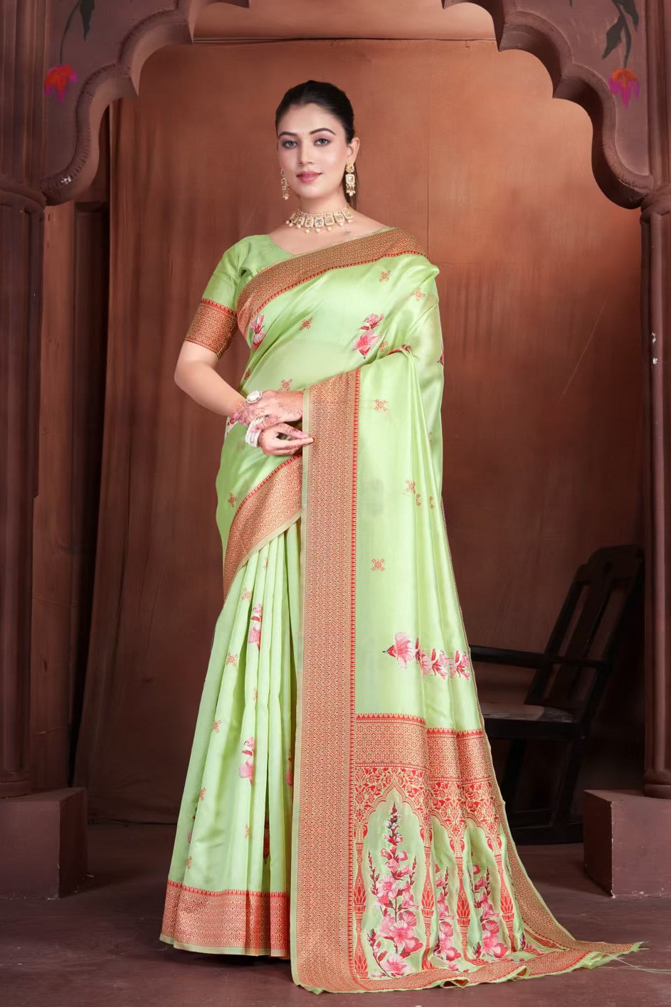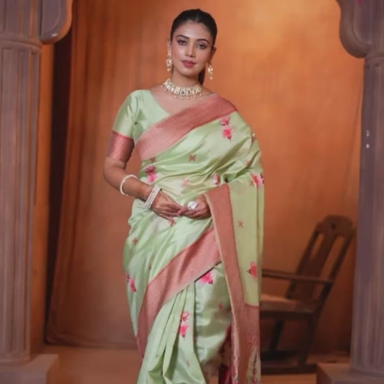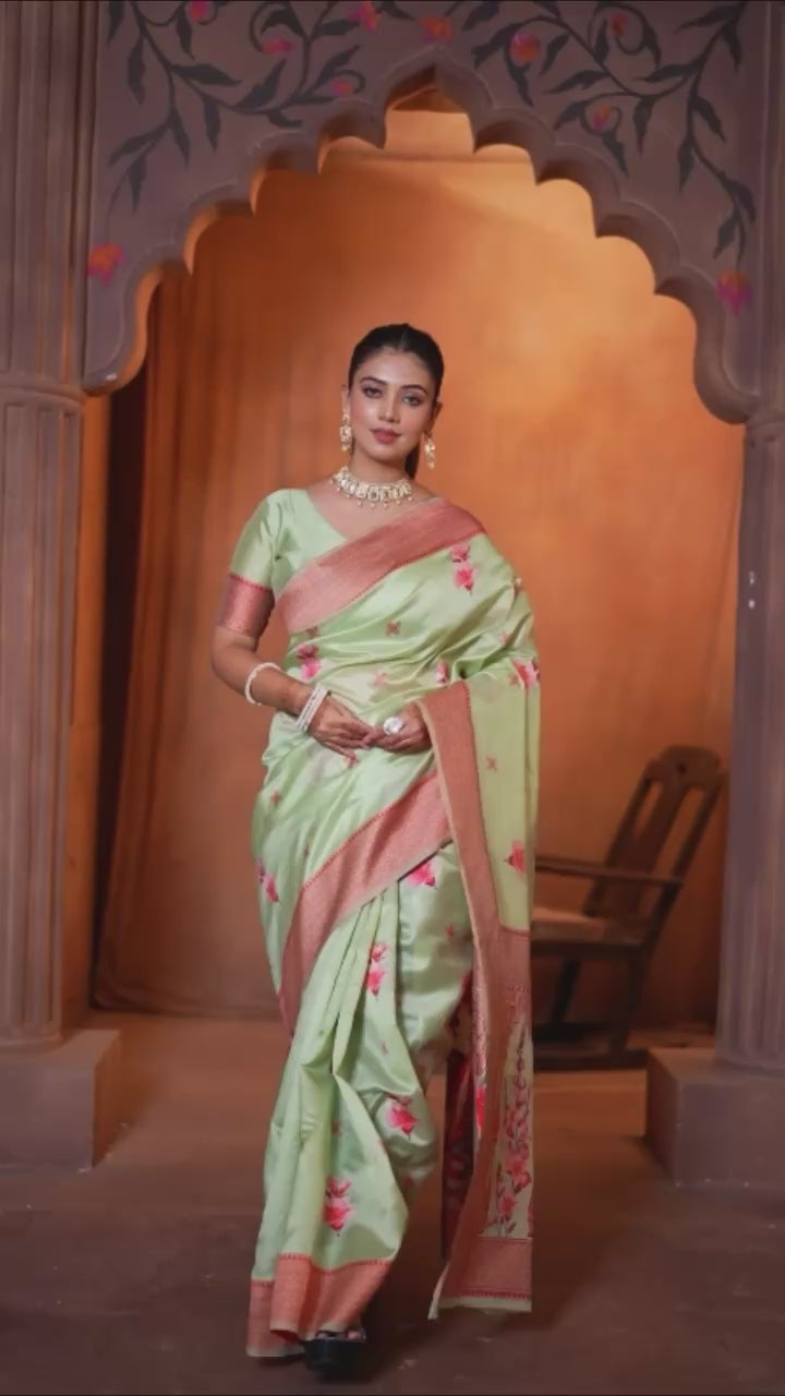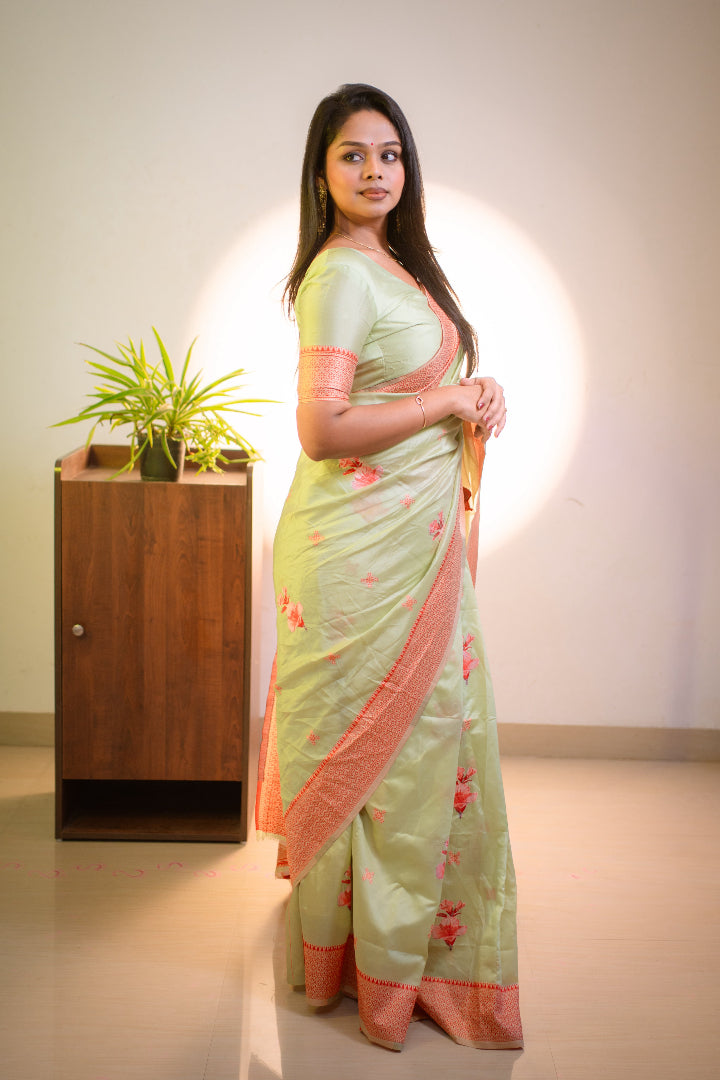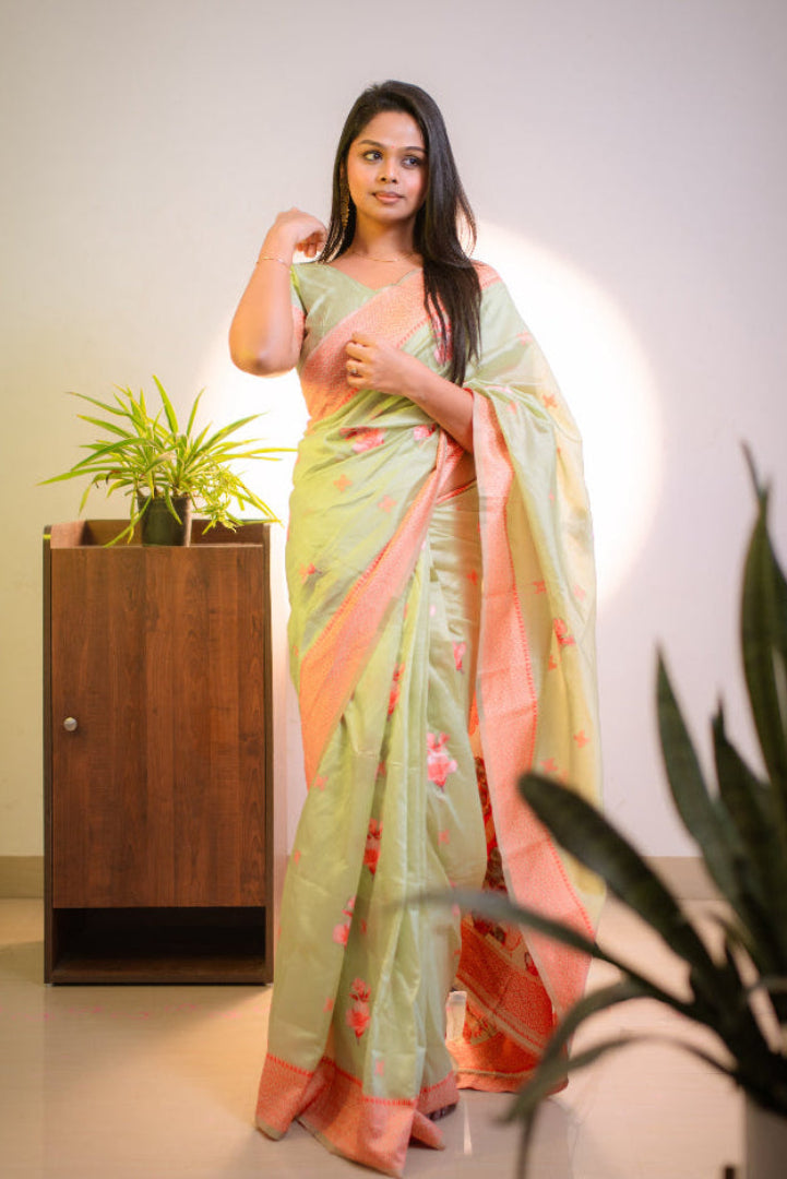 Beautifully Woven Banarasi Saree – Chanderi Cotton Blend with Digital Butta